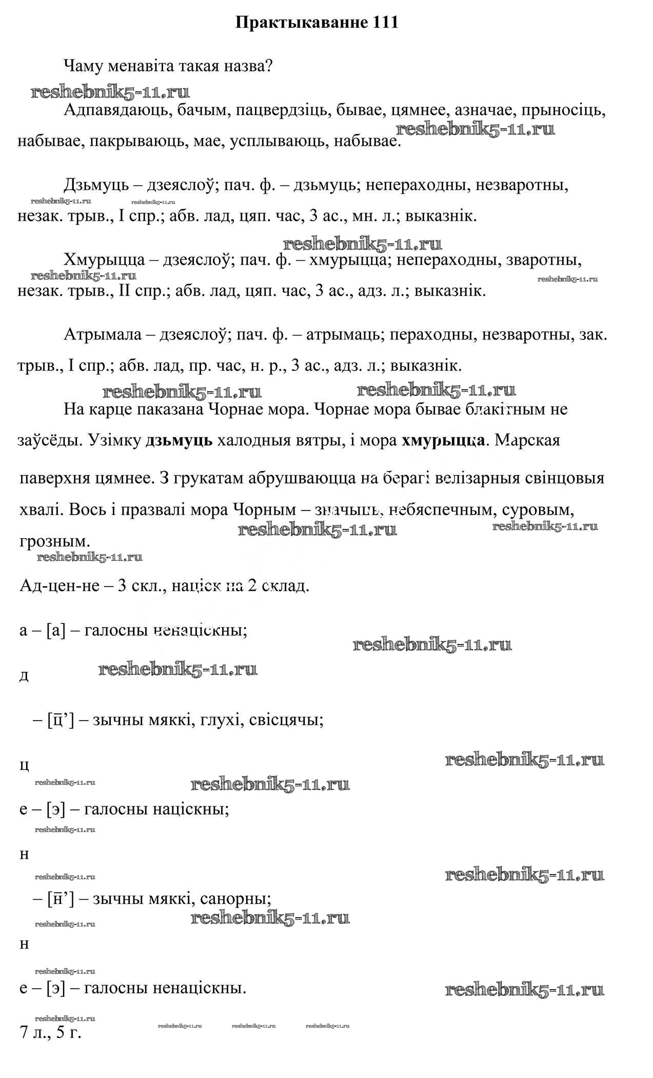 Готовая домашняя работа с ответами по Белорусскому языку за 7 класс Валочка, Язерская Учебник Национальный институт образования 2020 ФГОС - Практыкаванні 111