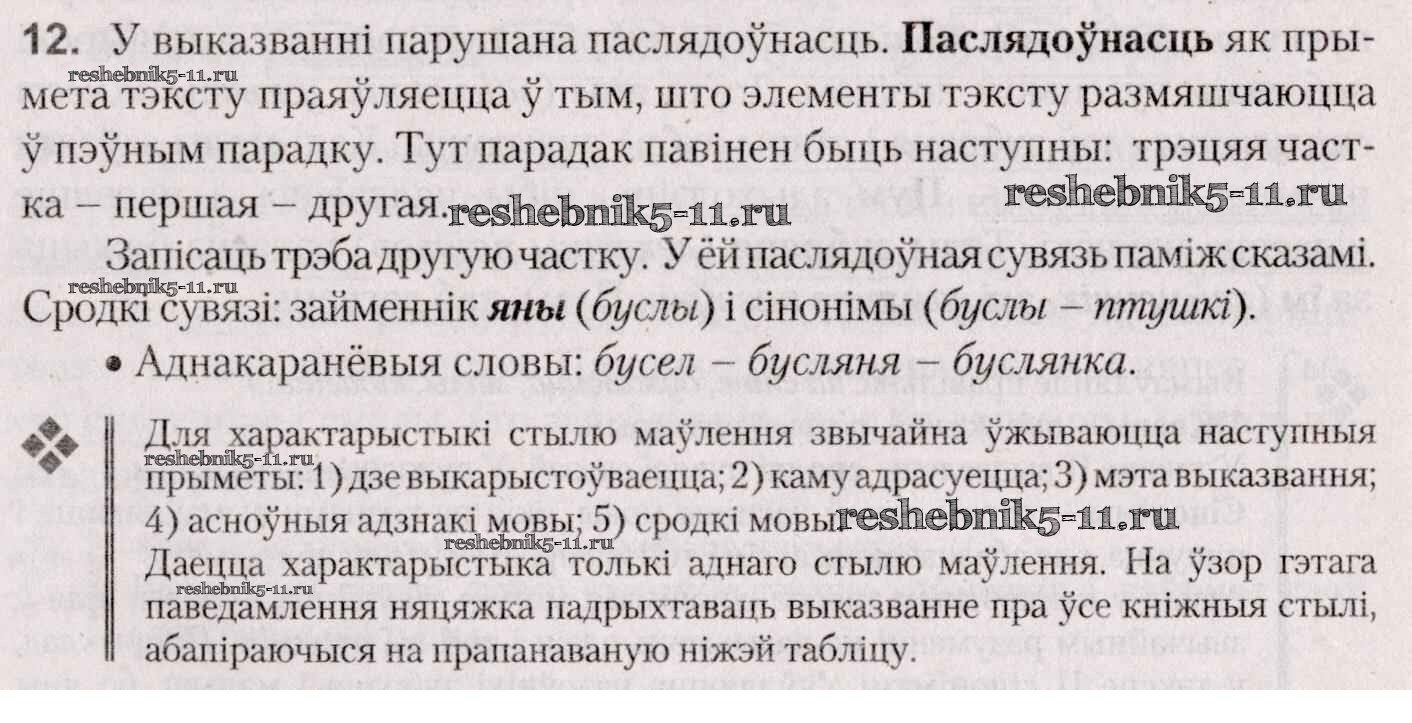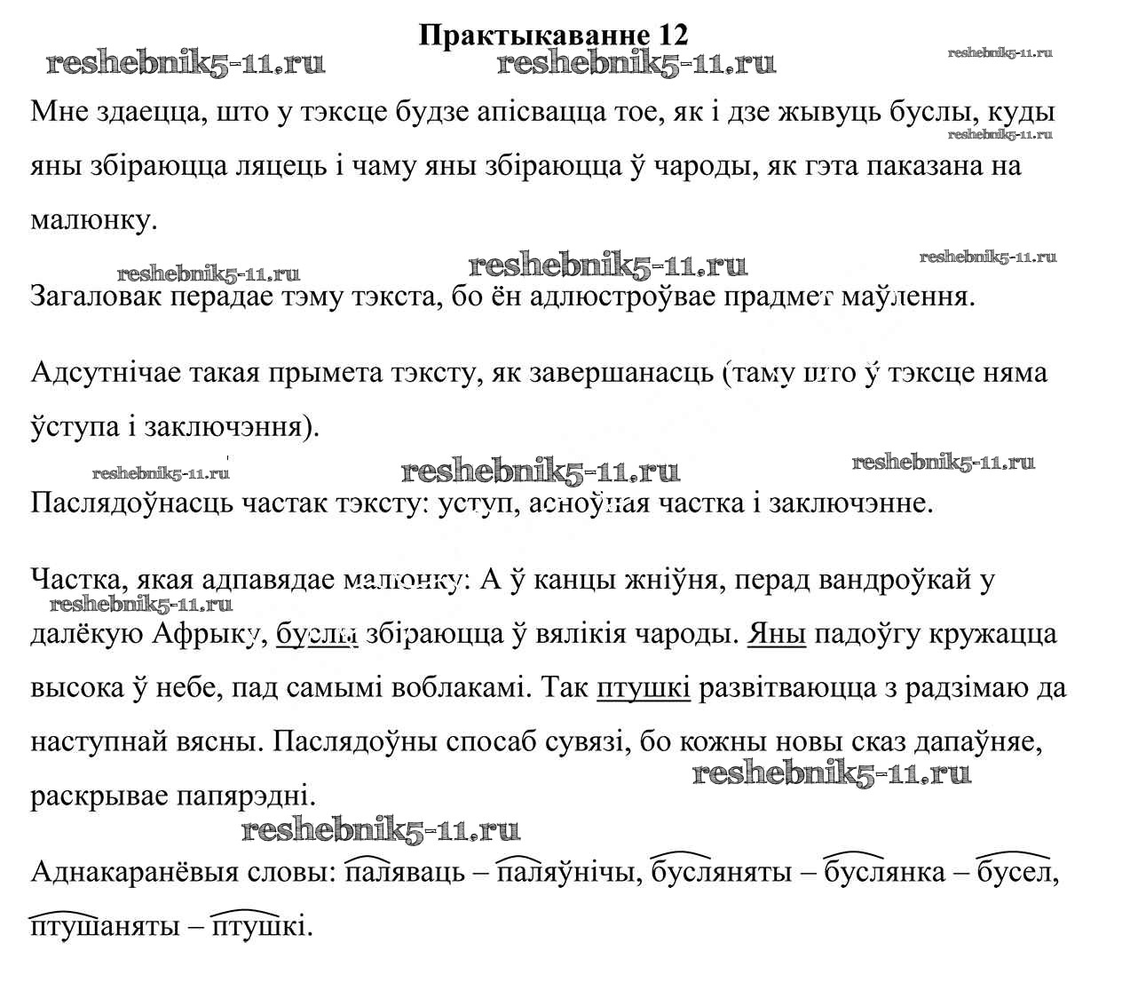 Готовая домашняя работа с ответами по Белорусскому языку за 7 класс Валочка, Язерская Учебник Национальный институт образования 2020 ФГОС - Практыкаванні 12