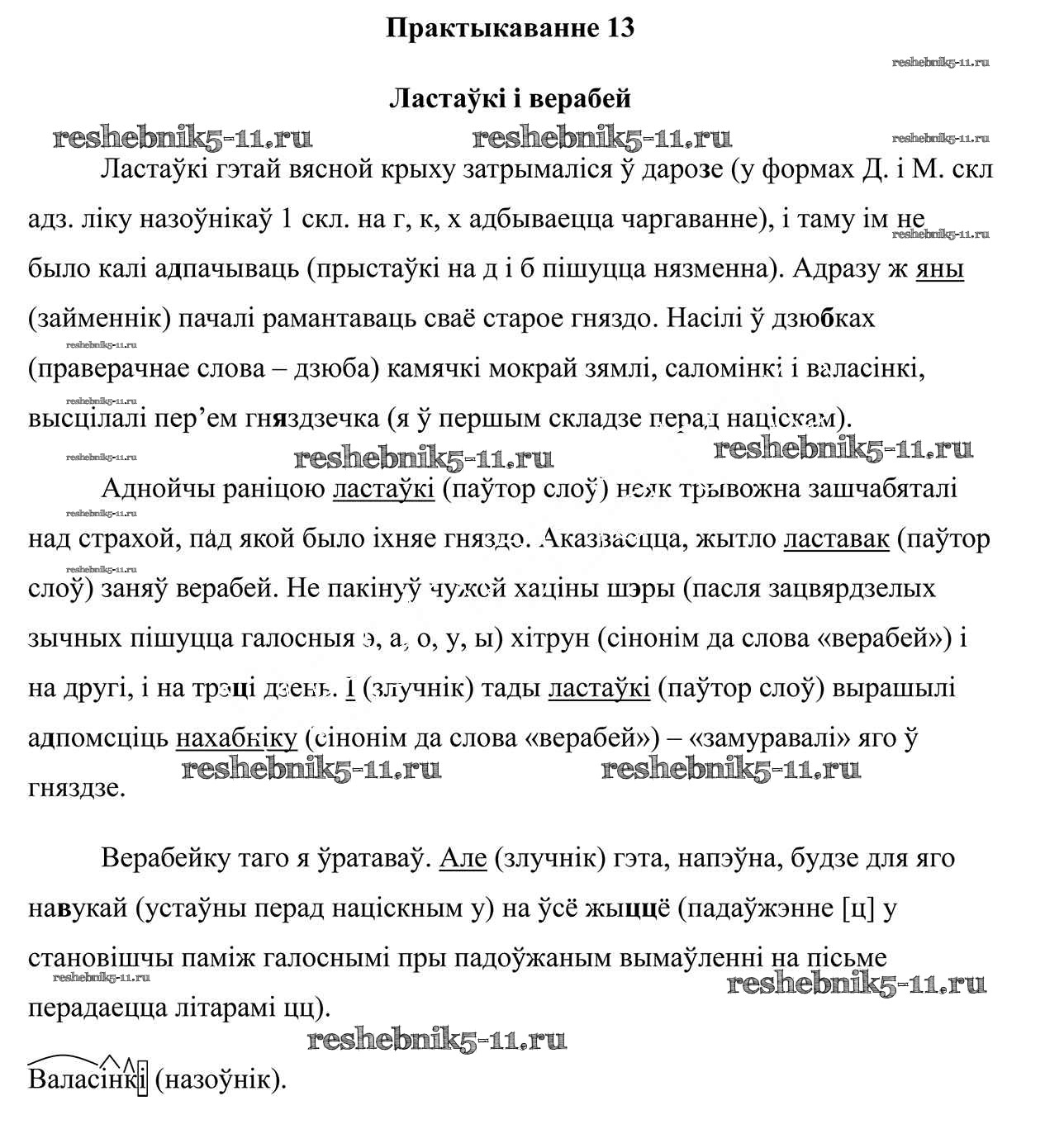 Готовая домашняя работа с ответами по Белорусскому языку за 7 класс Валочка, Язерская Учебник Национальный институт образования 2020 ФГОС - Практыкаванні 13