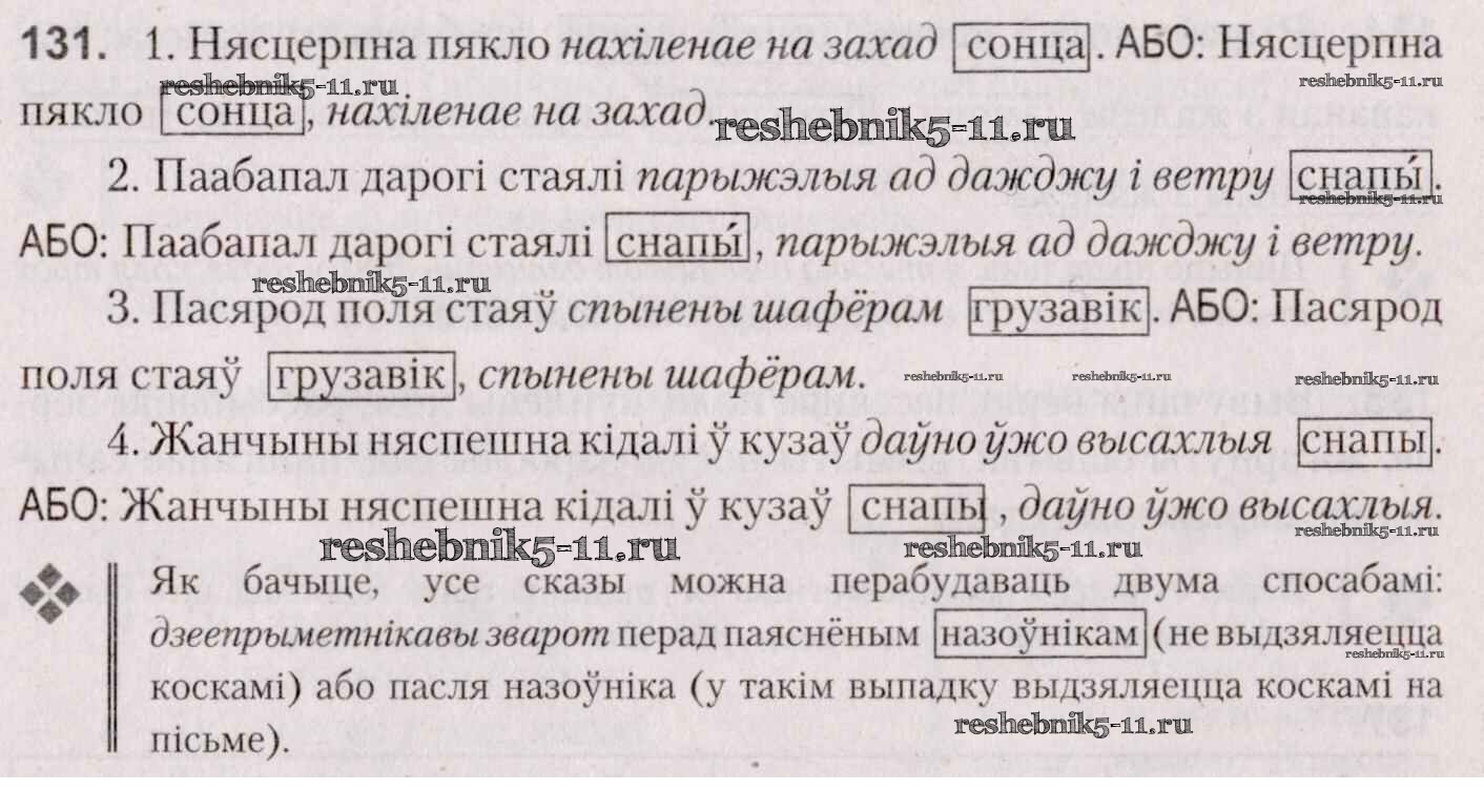 Готовая домашняя работа с ответами по Белорусскому языку за 7 класс Валочка, Язерская Учебник Национальный институт образования 2020 ФГОС - Практыкаванні 131