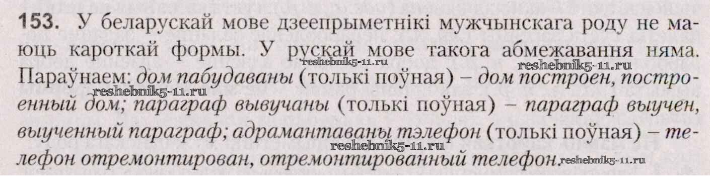 Готовая домашняя работа с ответами по Белорусскому языку за 7 класс Валочка, Язерская Учебник Национальный институт образования 2020 ФГОС - Практыкаванні 153