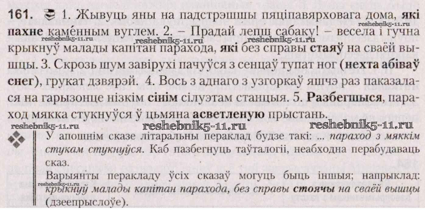 Готовая домашняя работа с ответами по Белорусскому языку за 7 класс Валочка, Язерская Учебник Национальный институт образования 2020 ФГОС - Практыкаванні 161