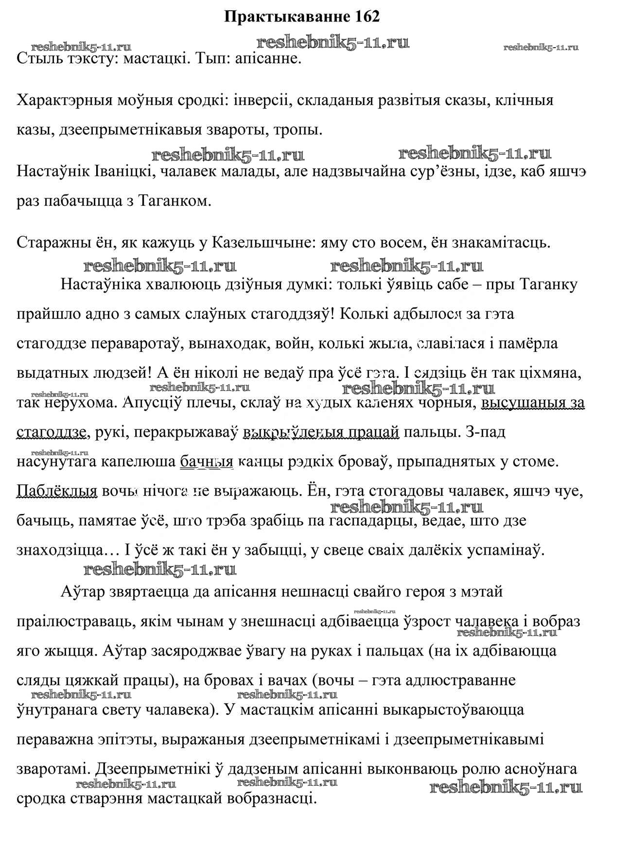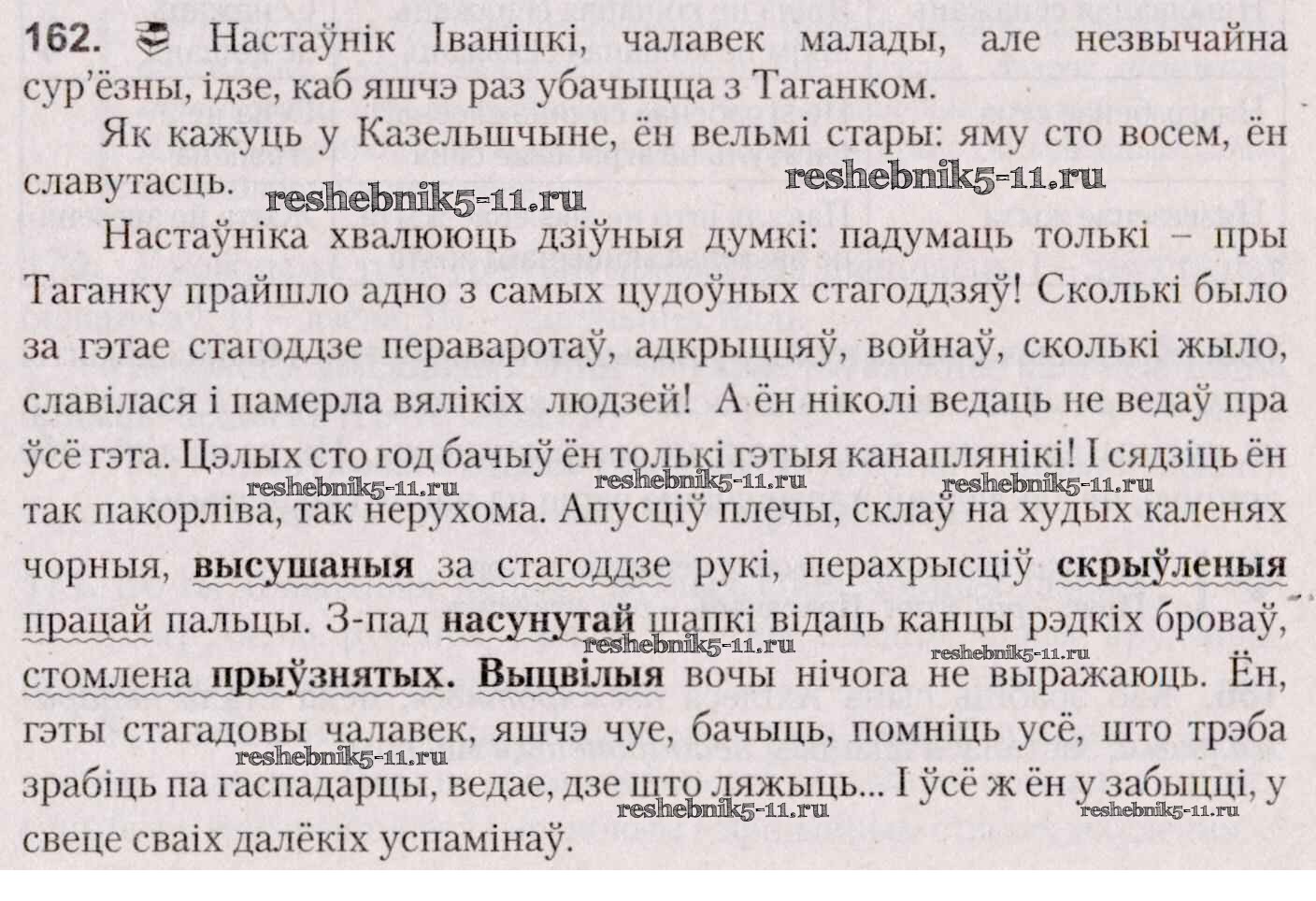 Готовая домашняя работа с ответами по Белорусскому языку за 7 класс Валочка, Язерская Учебник Национальный институт образования 2020 ФГОС - Практыкаванні 162