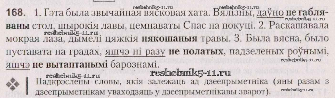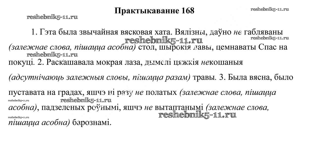 Готовая домашняя работа с ответами по Белорусскому языку за 7 класс Валочка, Язерская Учебник Национальный институт образования 2020 ФГОС - Практыкаванні 168