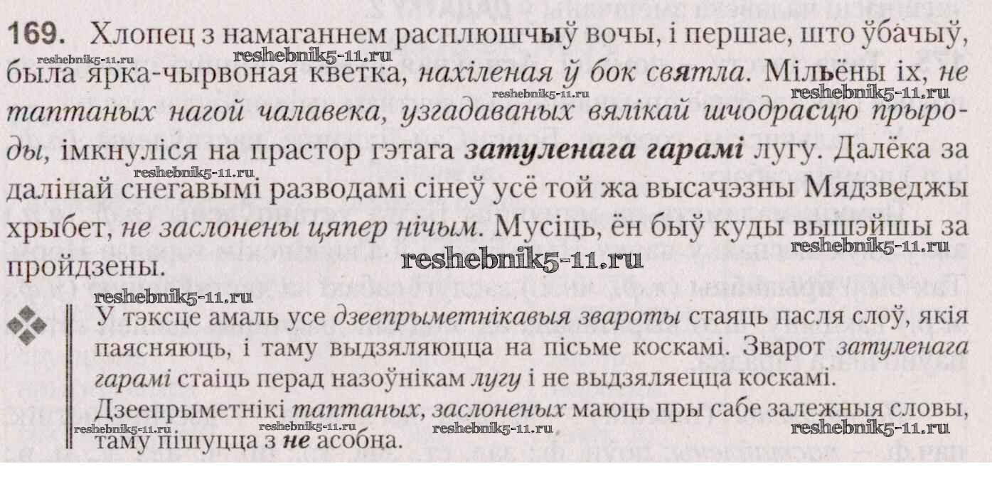 Готовая домашняя работа с ответами по Белорусскому языку за 7 класс Валочка, Язерская Учебник Национальный институт образования 2020 ФГОС - Практыкаванні 169