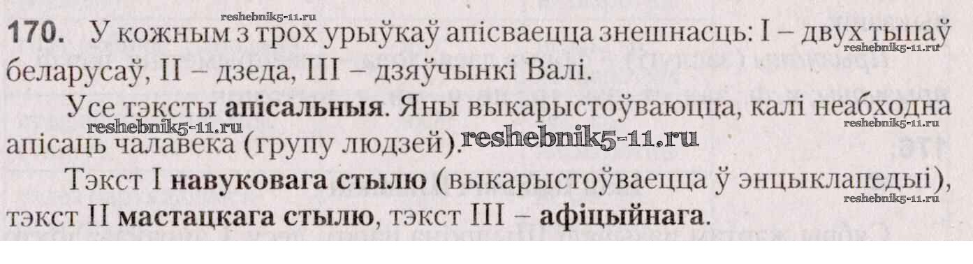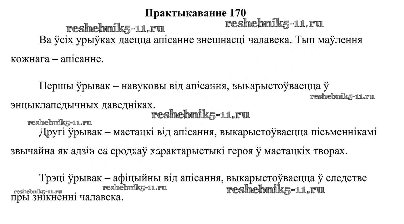 Готовая домашняя работа с ответами по Белорусскому языку за 7 класс Валочка, Язерская Учебник Национальный институт образования 2020 ФГОС - Практыкаванні 170