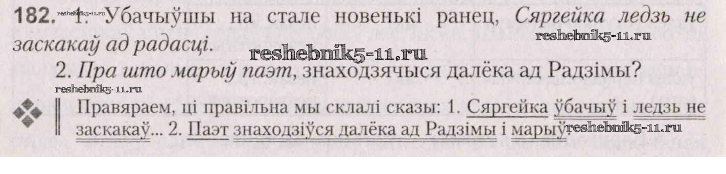Готовая домашняя работа с ответами по Белорусскому языку за 7 класс Валочка, Язерская Учебник Национальный институт образования 2020 ФГОС - Практыкаванні 182