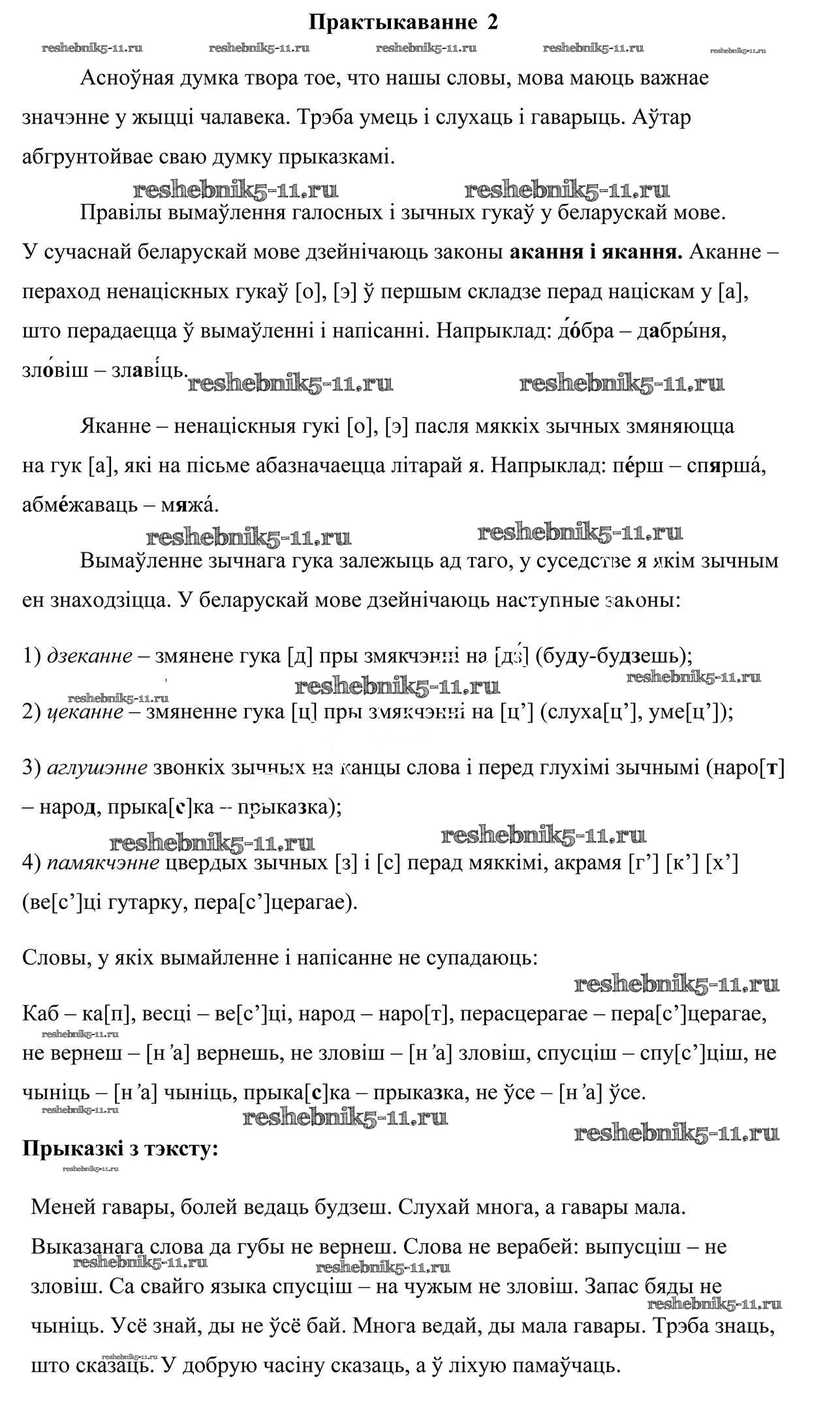 Готовая домашняя работа с ответами по Белорусскому языку за 7 класс Валочка, Язерская Учебник Национальный институт образования 2020 ФГОС - Практыкаванні 2