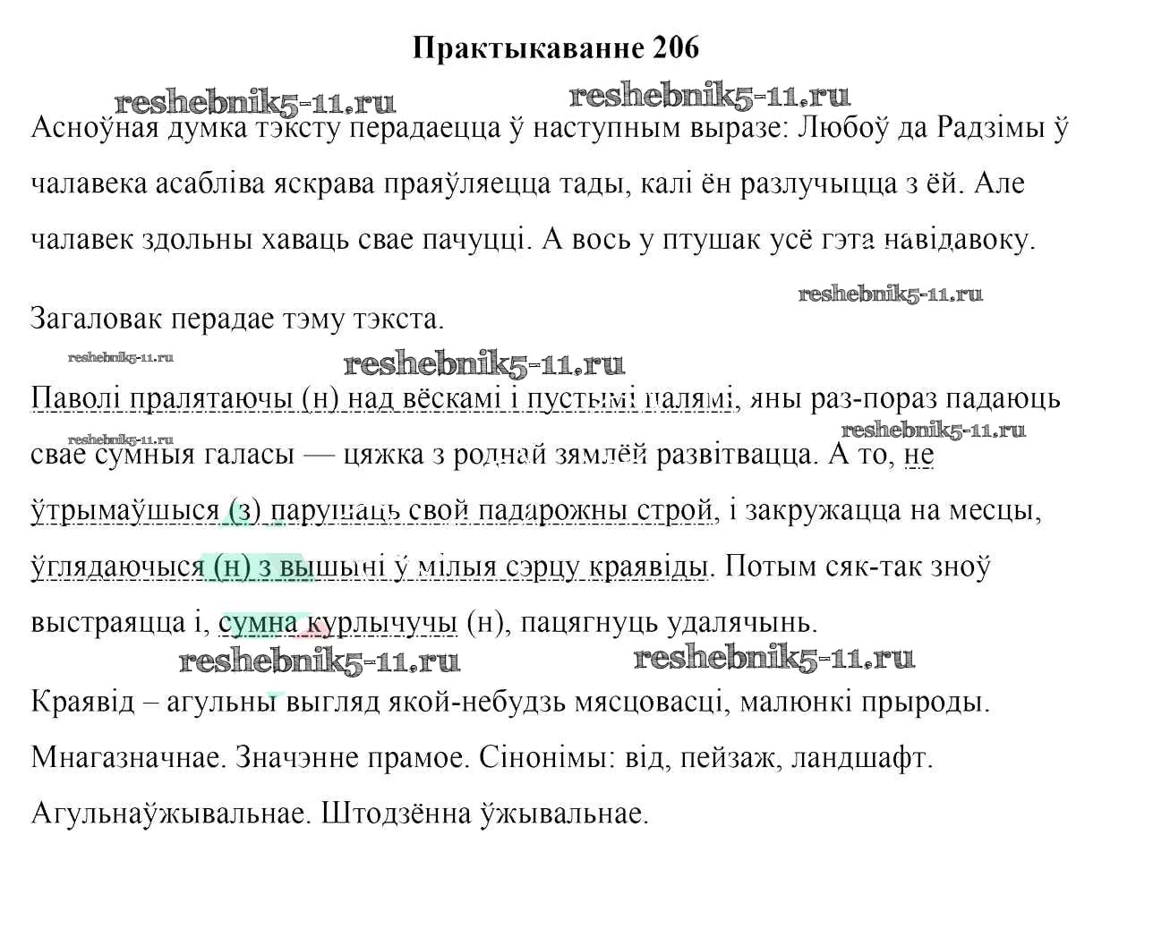 Готовая домашняя работа с ответами по Белорусскому языку за 7 класс Валочка, Язерская Учебник Национальный институт образования 2020 ФГОС - Практыкаванні 206