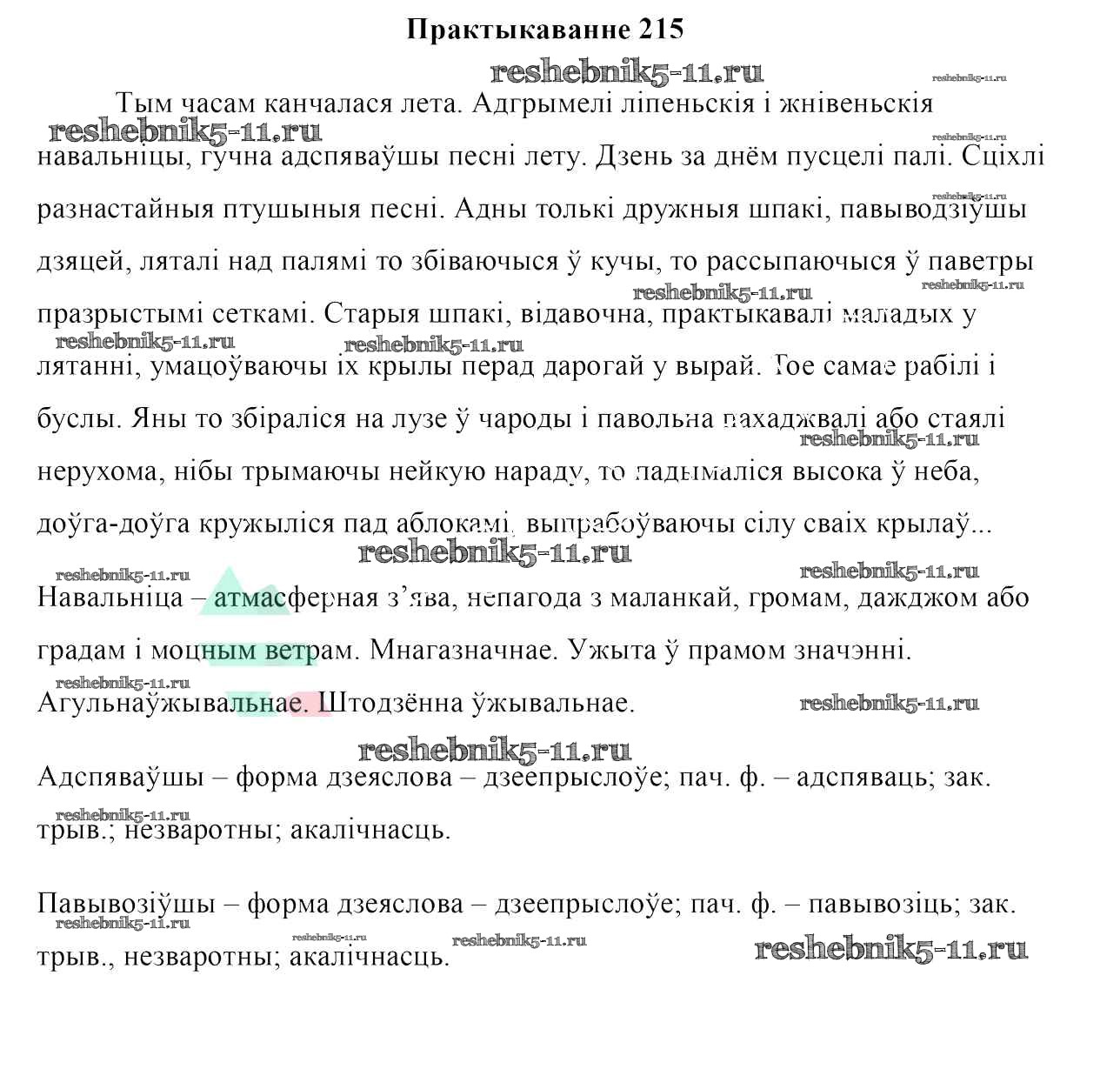 Белорусский язык за 7 класс Валочка Учебник Национальный институт образования практыкаванне 215