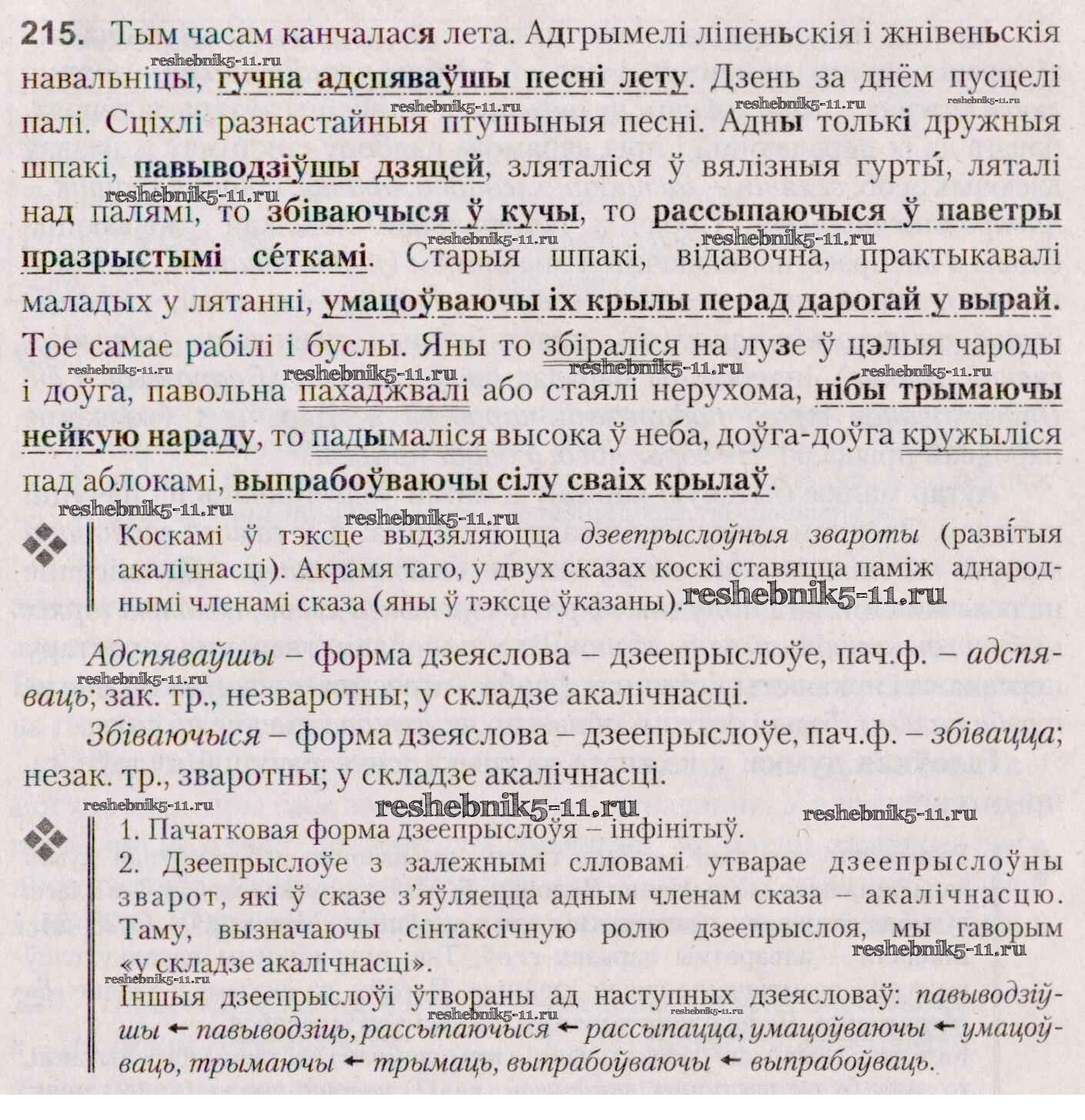Готовая домашняя работа с ответами по Белорусскому языку за 7 класс Валочка, Язерская Учебник Национальный институт образования 2020 ФГОС - Практыкаванні 215