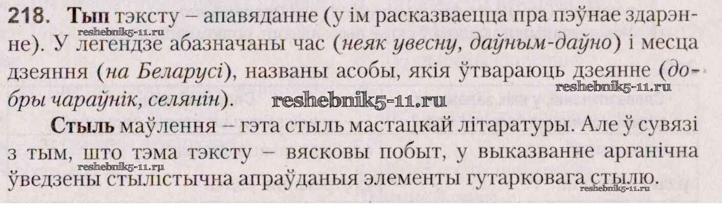 Готовая домашняя работа с ответами по Белорусскому языку за 7 класс Валочка, Язерская Учебник Национальный институт образования 2020 ФГОС - Практыкаванні 218