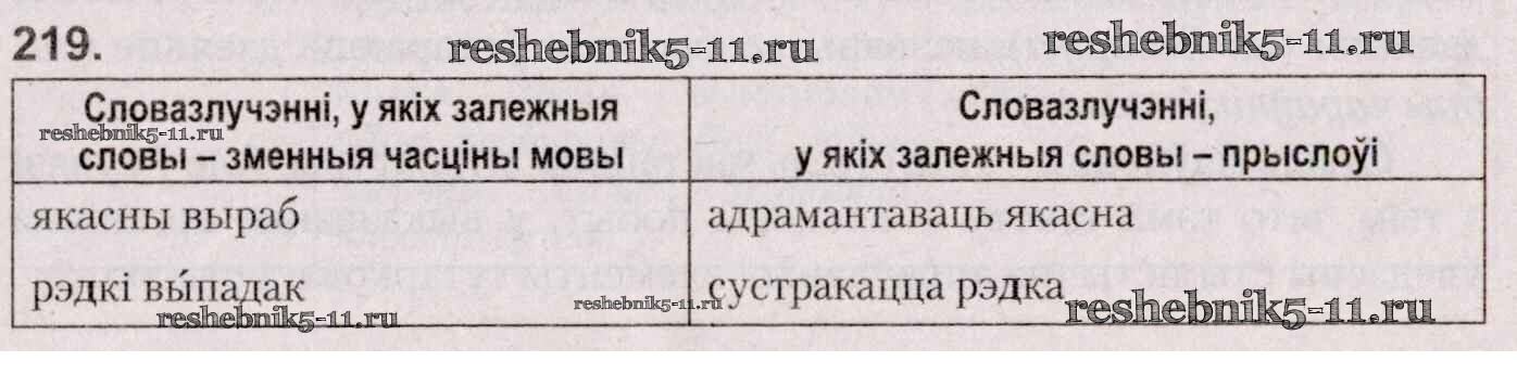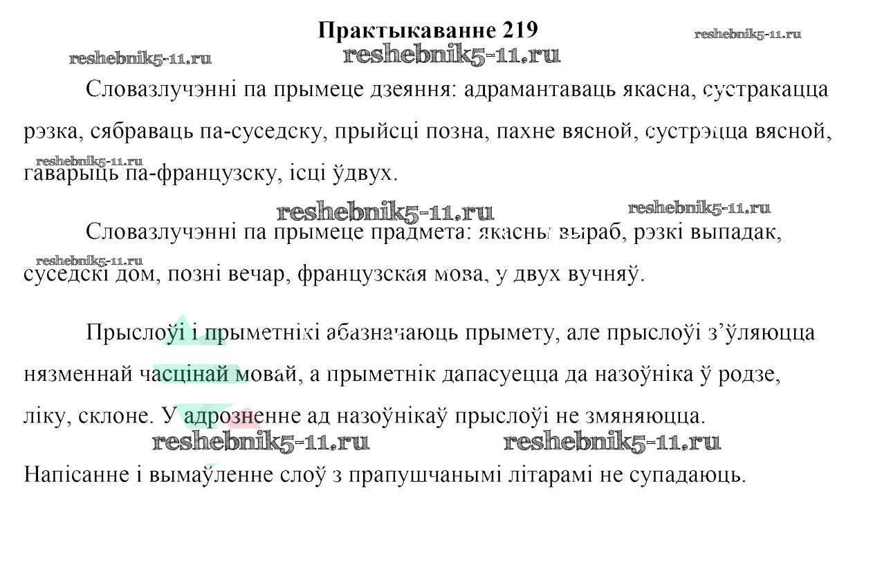 Готовая домашняя работа с ответами по Белорусскому языку за 7 класс Валочка, Язерская Учебник Национальный институт образования 2020 ФГОС - Практыкаванні 219