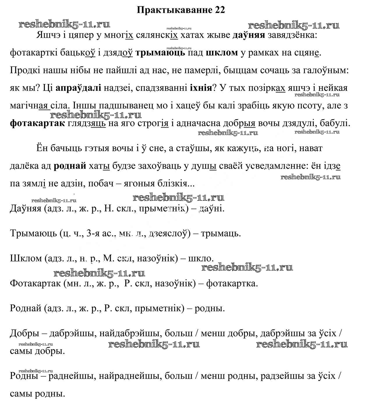 Готовая домашняя работа с ответами по Белорусскому языку за 7 класс Валочка, Язерская Учебник Национальный институт образования 2020 ФГОС - Практыкаванні 22