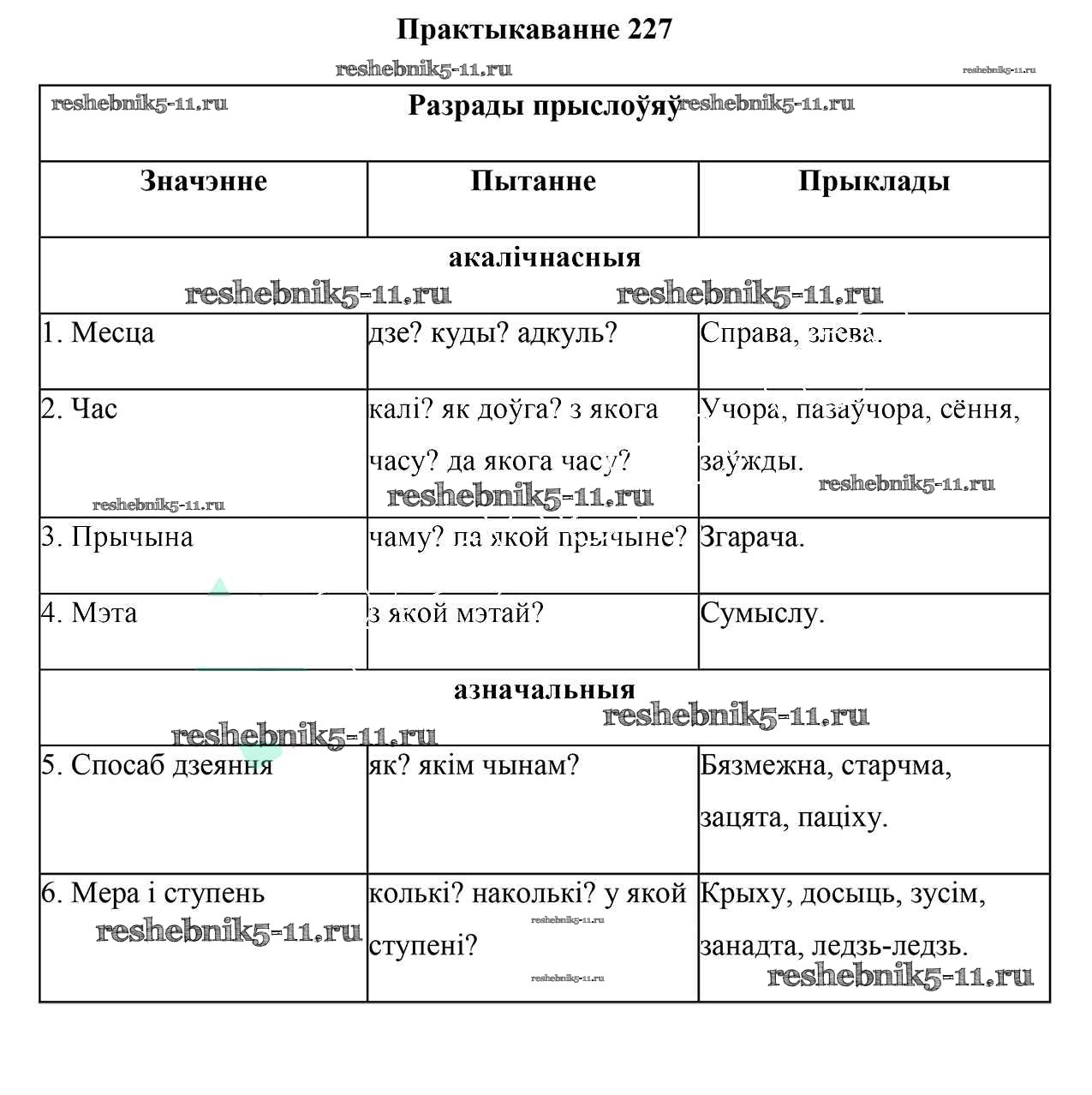 Готовая домашняя работа с ответами по Белорусскому языку за 7 класс Валочка, Язерская Учебник Национальный институт образования 2020 ФГОС - Практыкаванні 227