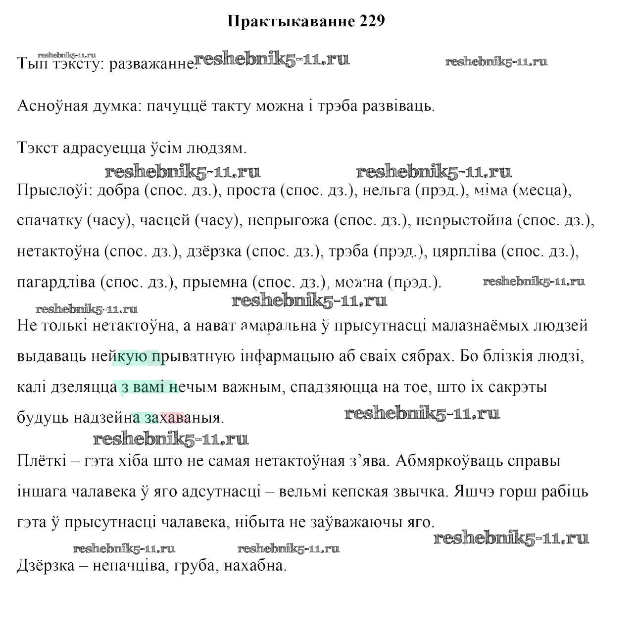 Готовая домашняя работа с ответами по Белорусскому языку за 7 класс Валочка, Язерская Учебник Национальный институт образования 2020 ФГОС - Практыкаванні 229