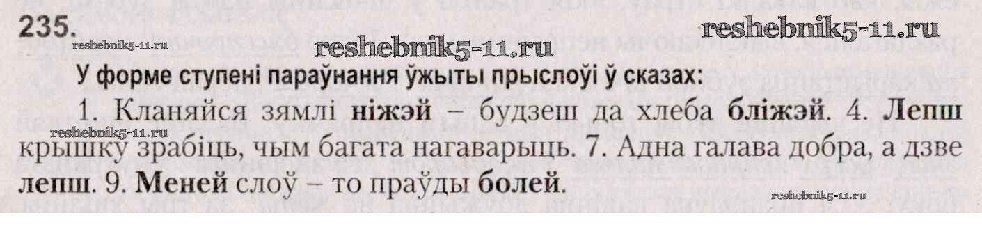 Готовая домашняя работа с ответами по Белорусскому языку за 7 класс Валочка, Язерская Учебник Национальный институт образования 2020 ФГОС - Практыкаванні 235