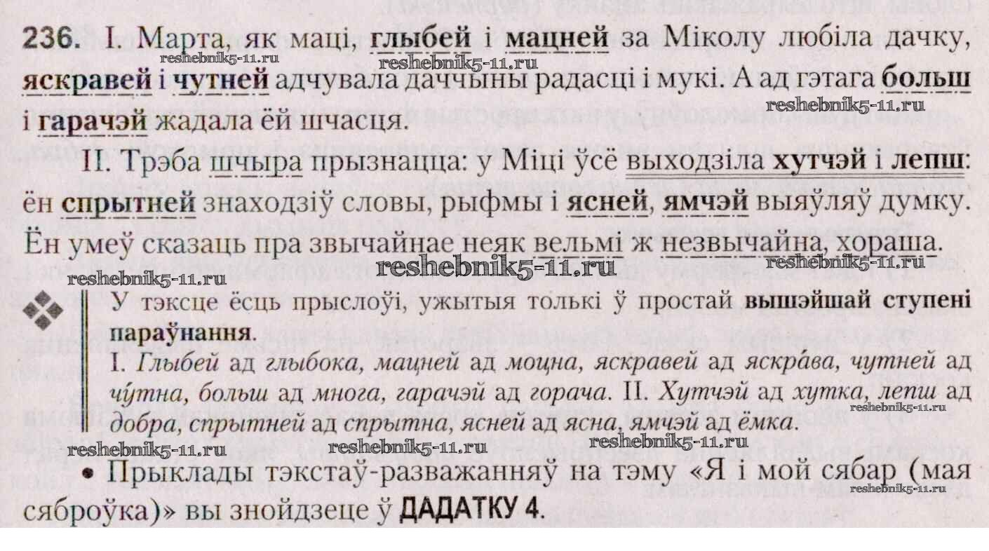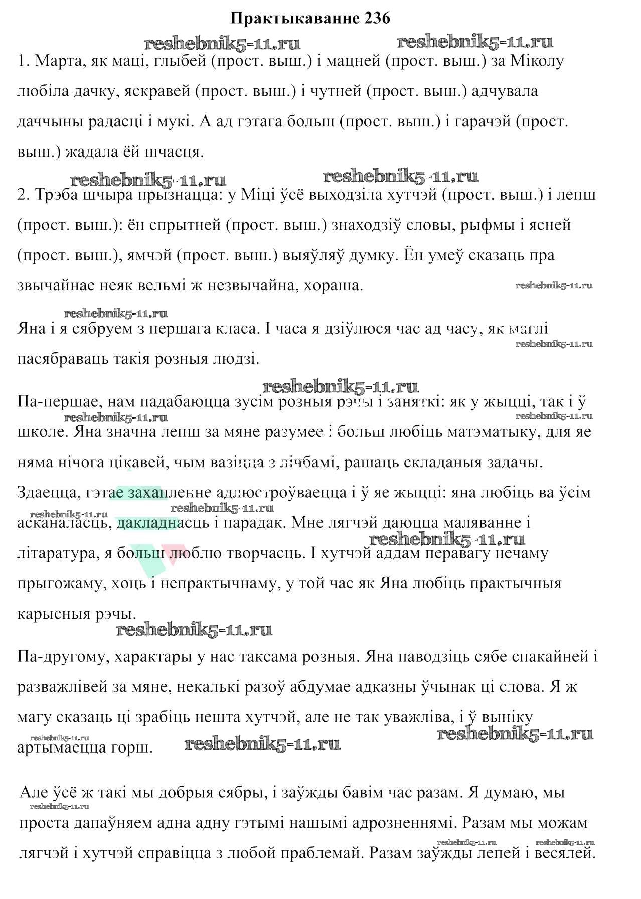 Готовая домашняя работа с ответами по Белорусскому языку за 7 класс Валочка, Язерская Учебник Национальный институт образования 2020 ФГОС - Практыкаванні 236