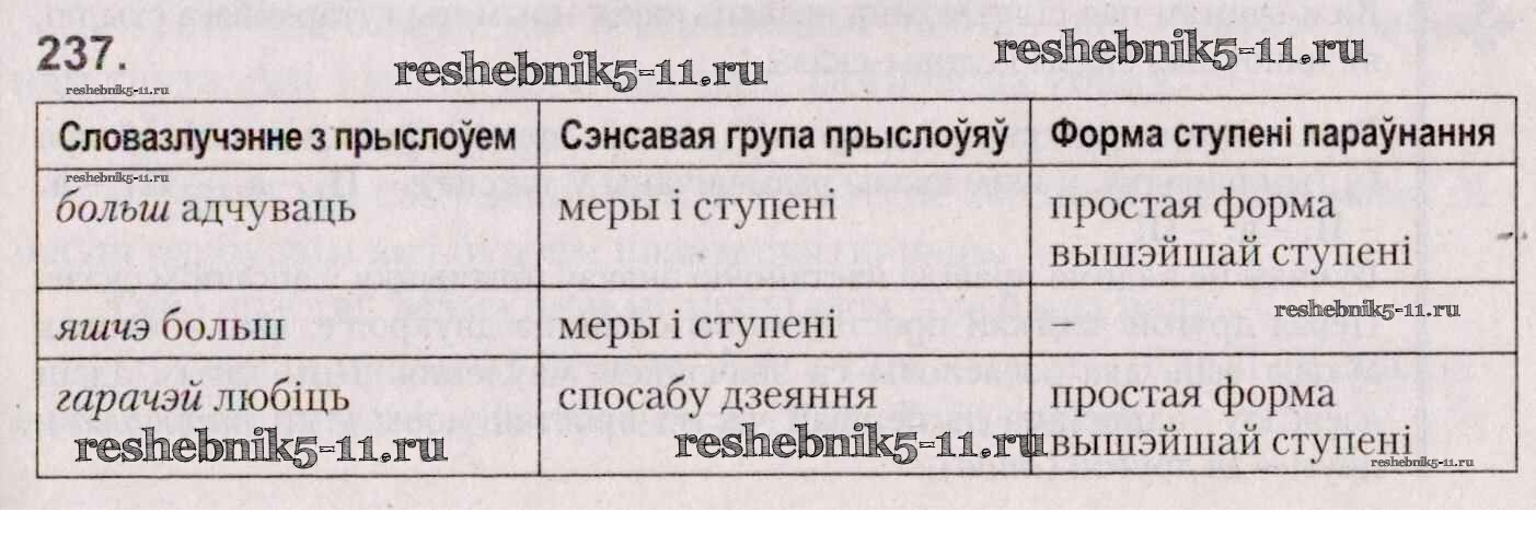 Готовая домашняя работа с ответами по Белорусскому языку за 7 класс Валочка, Язерская Учебник Национальный институт образования 2020 ФГОС - Практыкаванні 237
