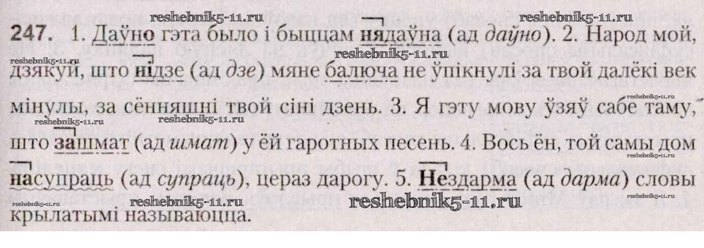 Готовая домашняя работа с ответами по Белорусскому языку за 7 класс Валочка, Язерская Учебник Национальный институт образования 2020 ФГОС - Практыкаванні 247