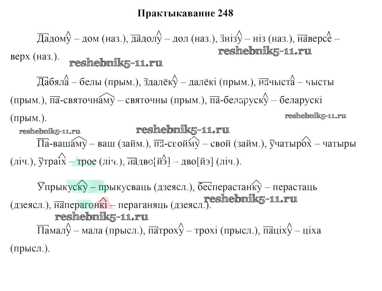 Готовая домашняя работа с ответами по Белорусскому языку за 7 класс Валочка, Язерская Учебник Национальный институт образования 2020 ФГОС - Практыкаванні 248