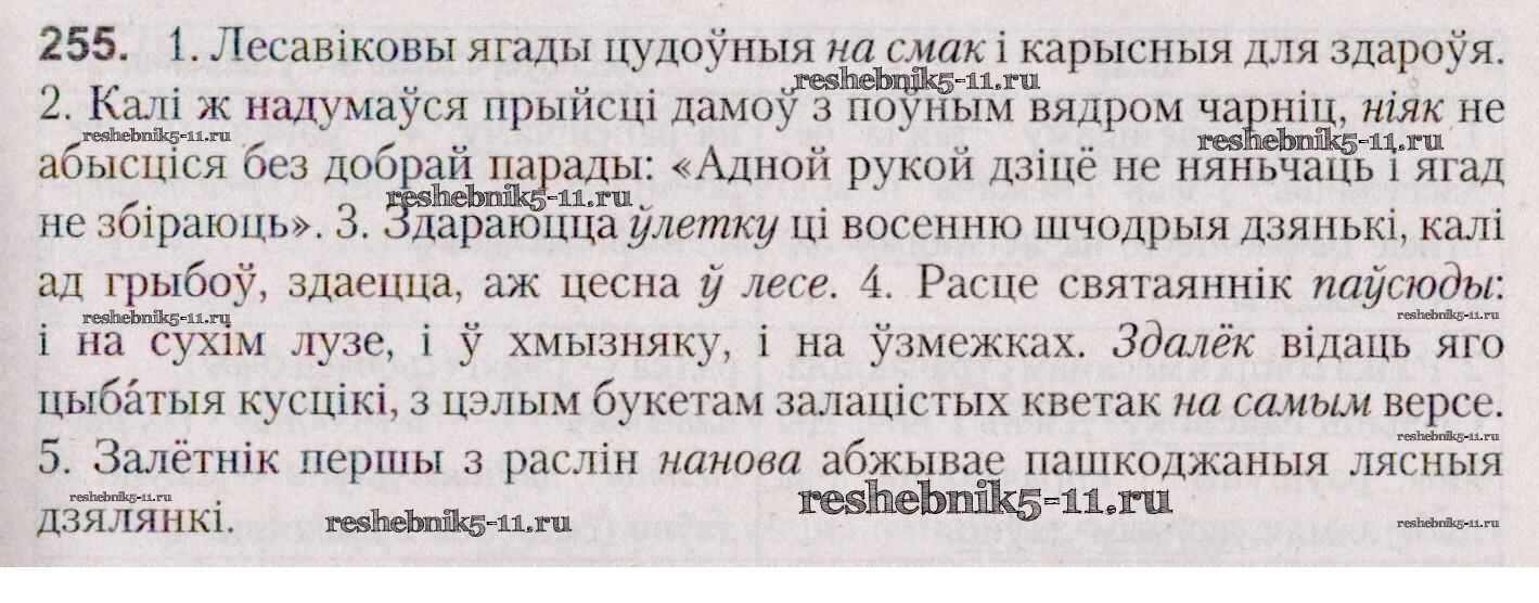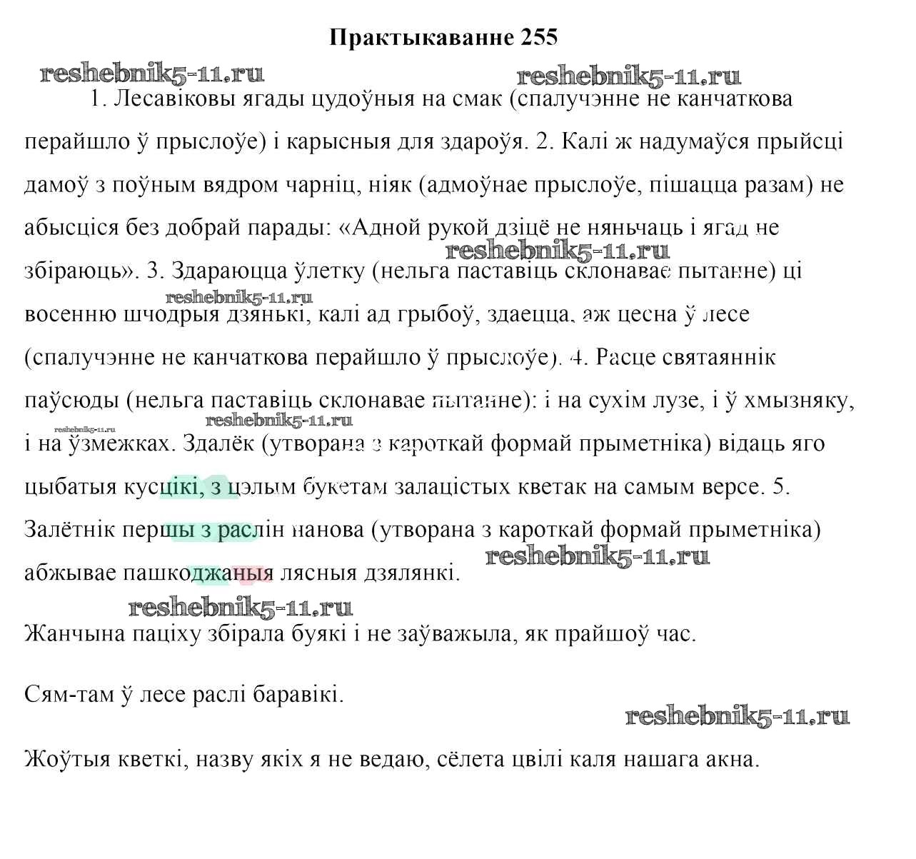 Готовая домашняя работа с ответами по Белорусскому языку за 7 класс Валочка, Язерская Учебник Национальный институт образования 2020 ФГОС - Практыкаванні 255