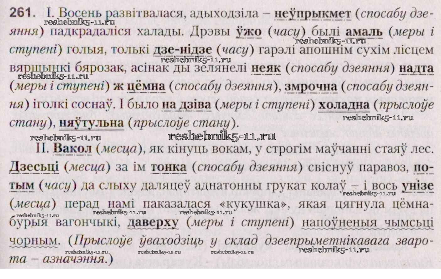 Готовая домашняя работа с ответами по Белорусскому языку за 7 класс Валочка, Язерская Учебник Национальный институт образования 2020 ФГОС - Практыкаванні 261