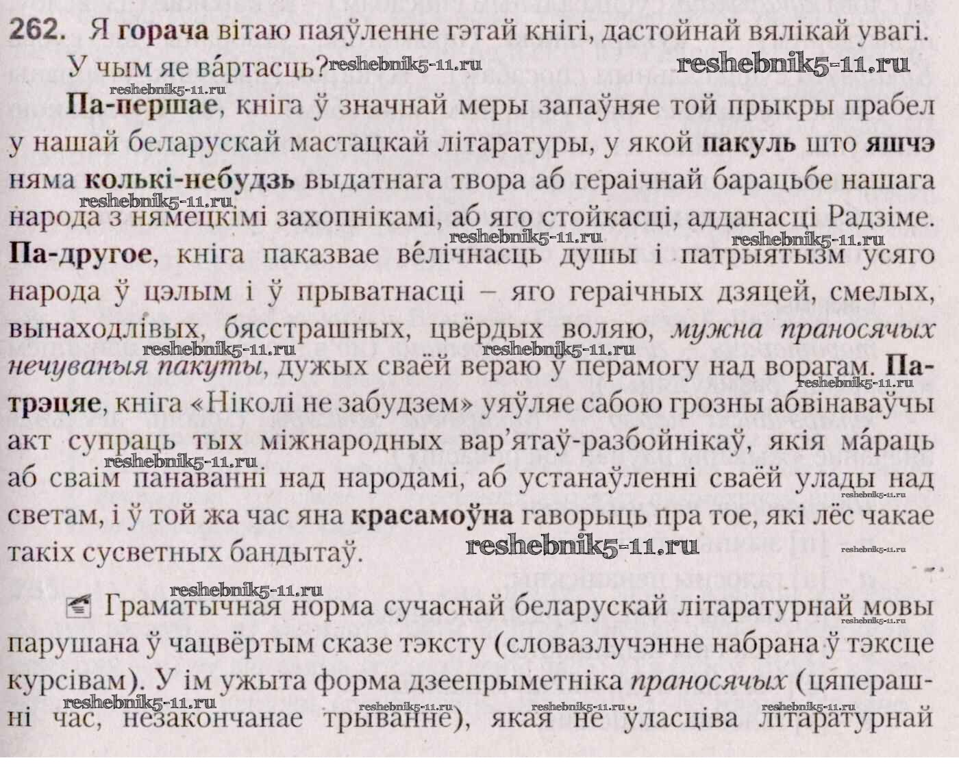 Готовая домашняя работа с ответами по Белорусскому языку за 7 класс Валочка, Язерская Учебник Национальный институт образования 2020 ФГОС - Практыкаванні 262