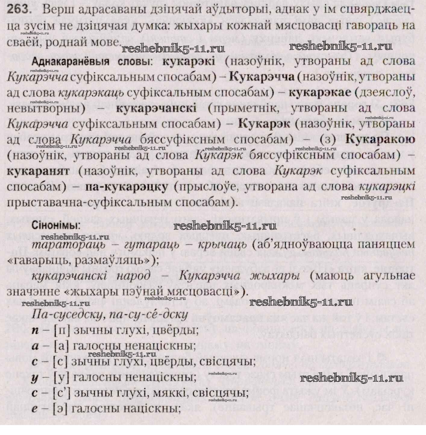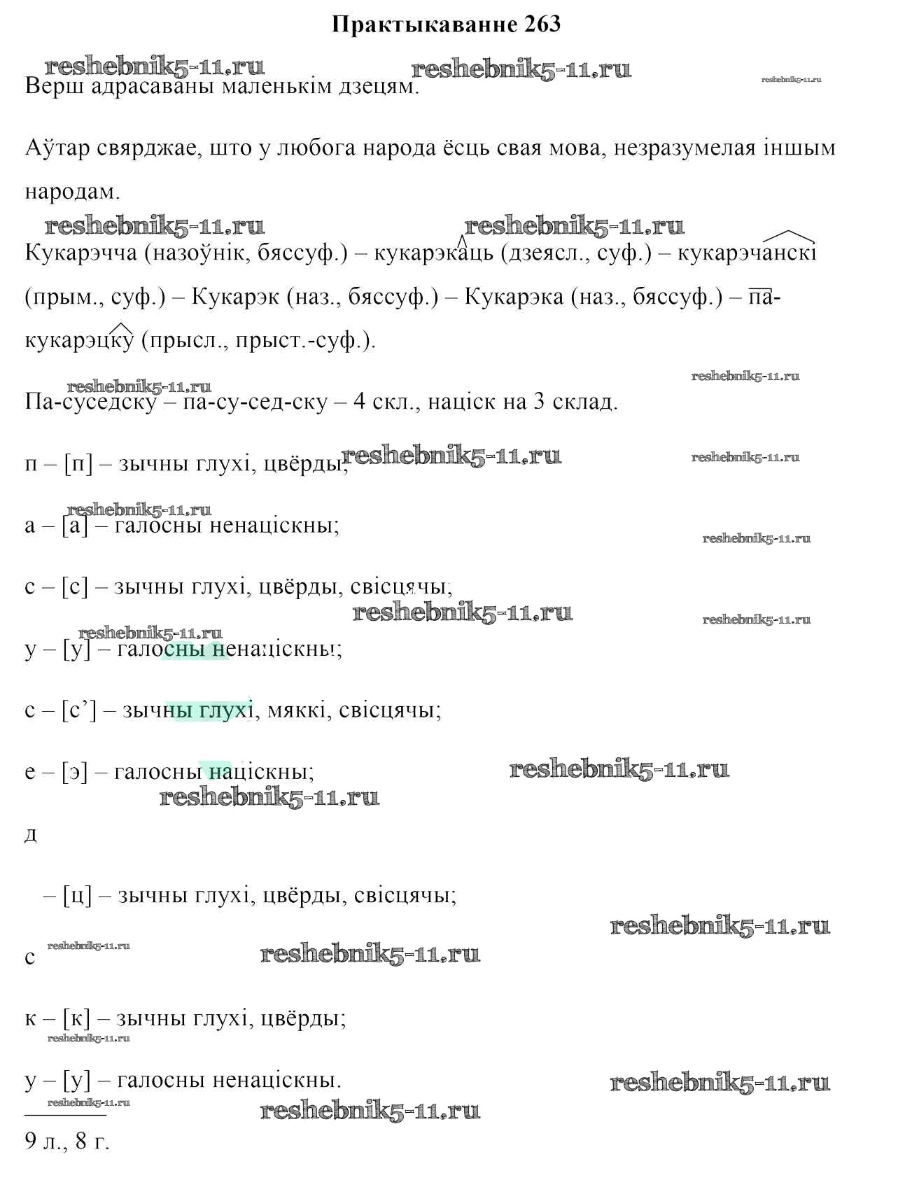 Готовая домашняя работа с ответами по Белорусскому языку за 7 класс Валочка, Язерская Учебник Национальный институт образования 2020 ФГОС - Практыкаванні 263