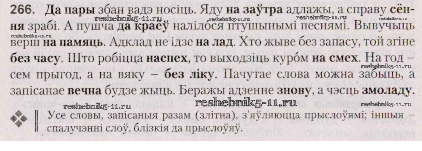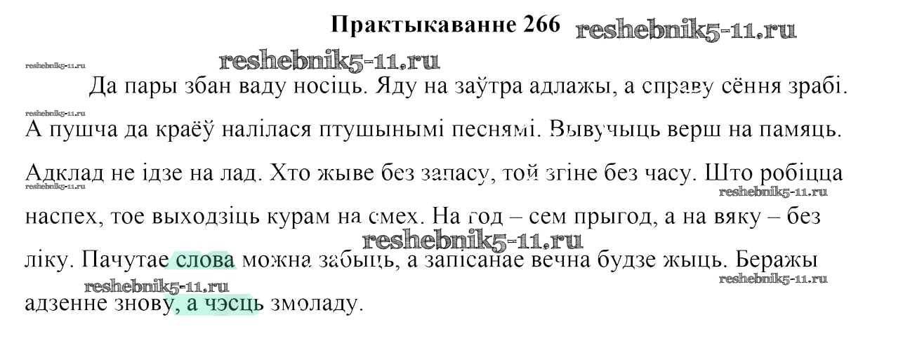Готовая домашняя работа с ответами по Белорусскому языку за 7 класс Валочка, Язерская Учебник Национальный институт образования 2020 ФГОС - Практыкаванні 266