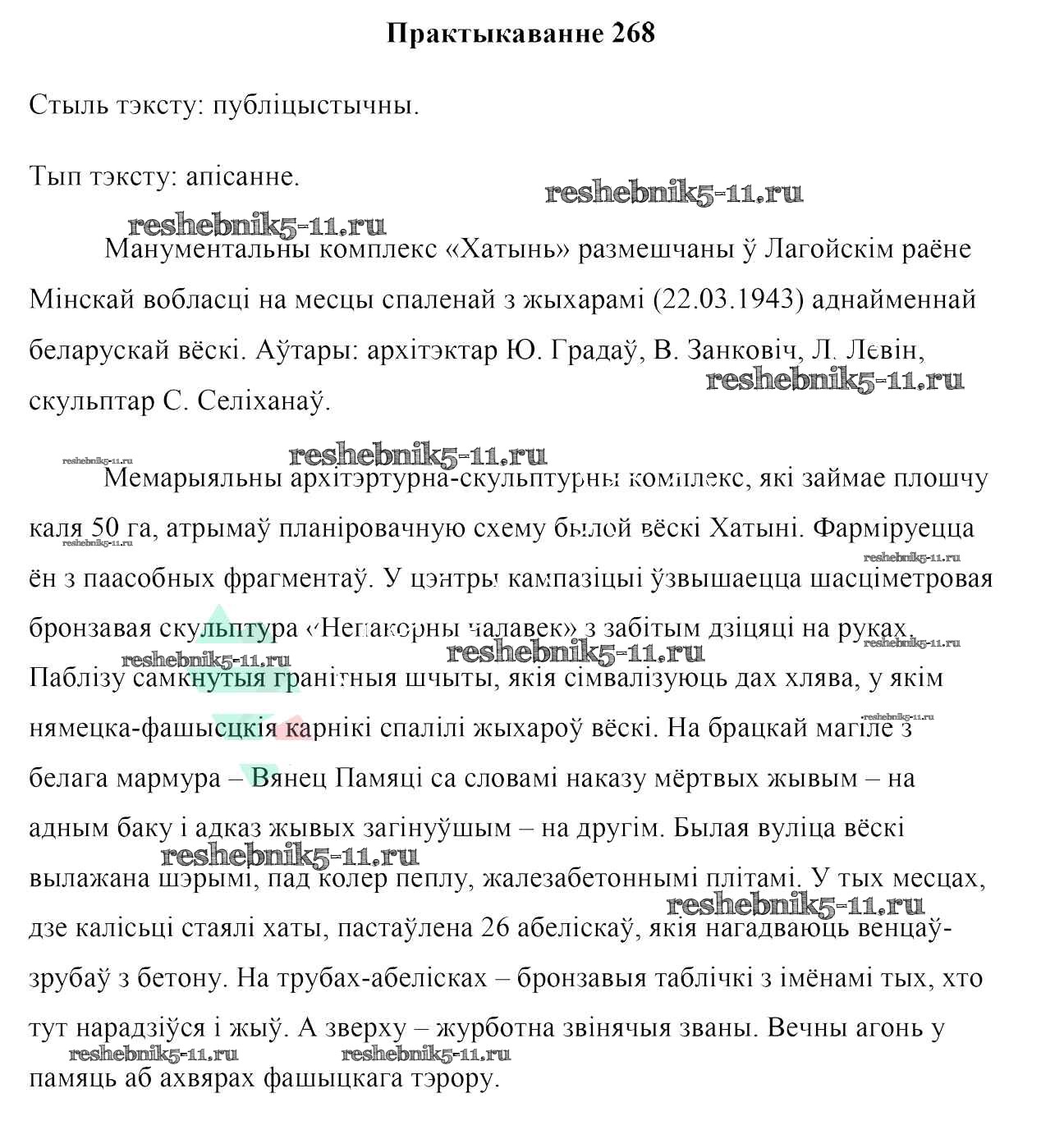 Белорусский язык за 7 класс Валочка Учебник Национальный институт образования практыкаванне 268