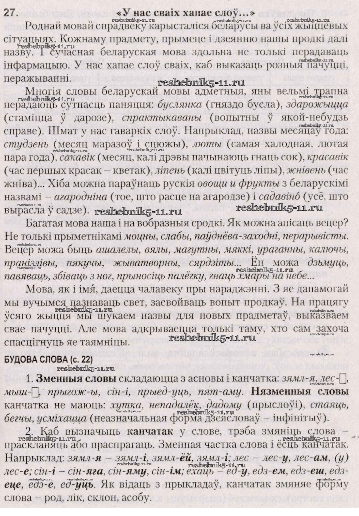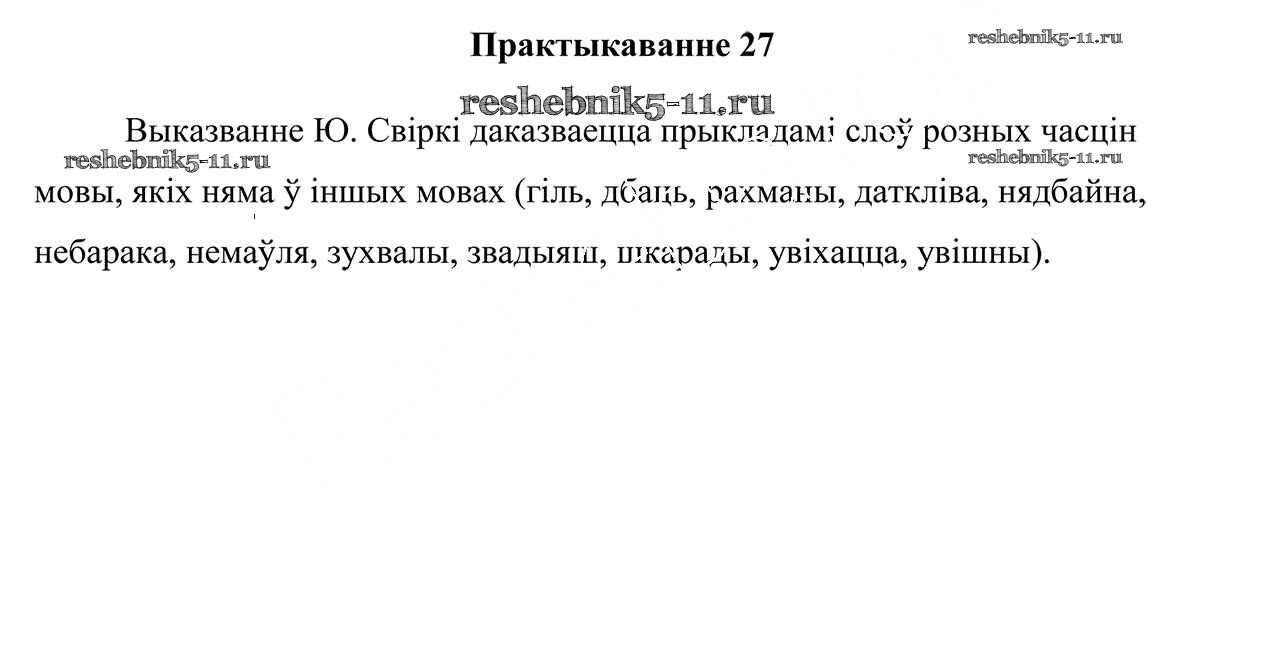 Готовая домашняя работа с ответами по Белорусскому языку за 7 класс Валочка, Язерская Учебник Национальный институт образования 2020 ФГОС - Практыкаванні 27