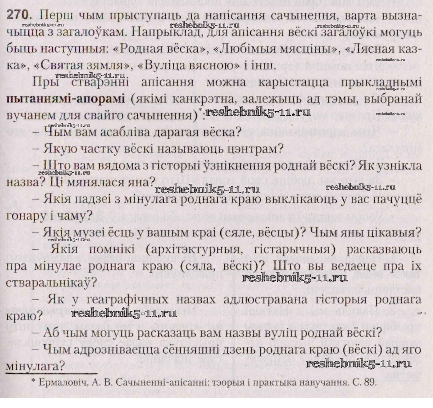 Готовая домашняя работа с ответами по Белорусскому языку за 7 класс Валочка, Язерская Учебник Национальный институт образования 2020 ФГОС - Практыкаванні 270