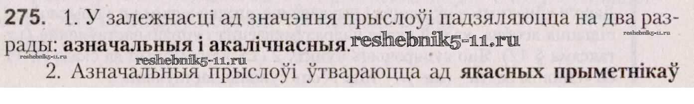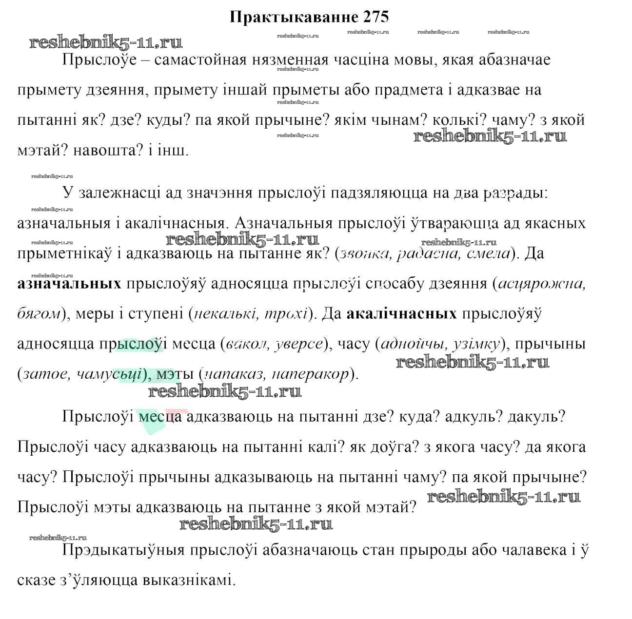 Готовая домашняя работа с ответами по Белорусскому языку за 7 класс Валочка, Язерская Учебник Национальный институт образования 2020 ФГОС - Практыкаванні 275