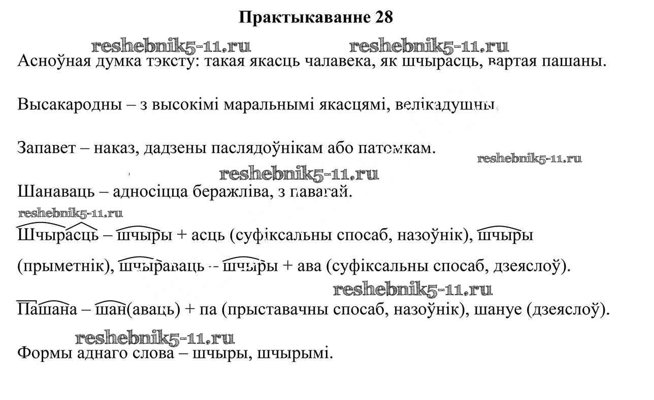 Готовая домашняя работа с ответами по Белорусскому языку за 7 класс Валочка, Язерская Учебник Национальный институт образования 2020 ФГОС - Практыкаванні 28