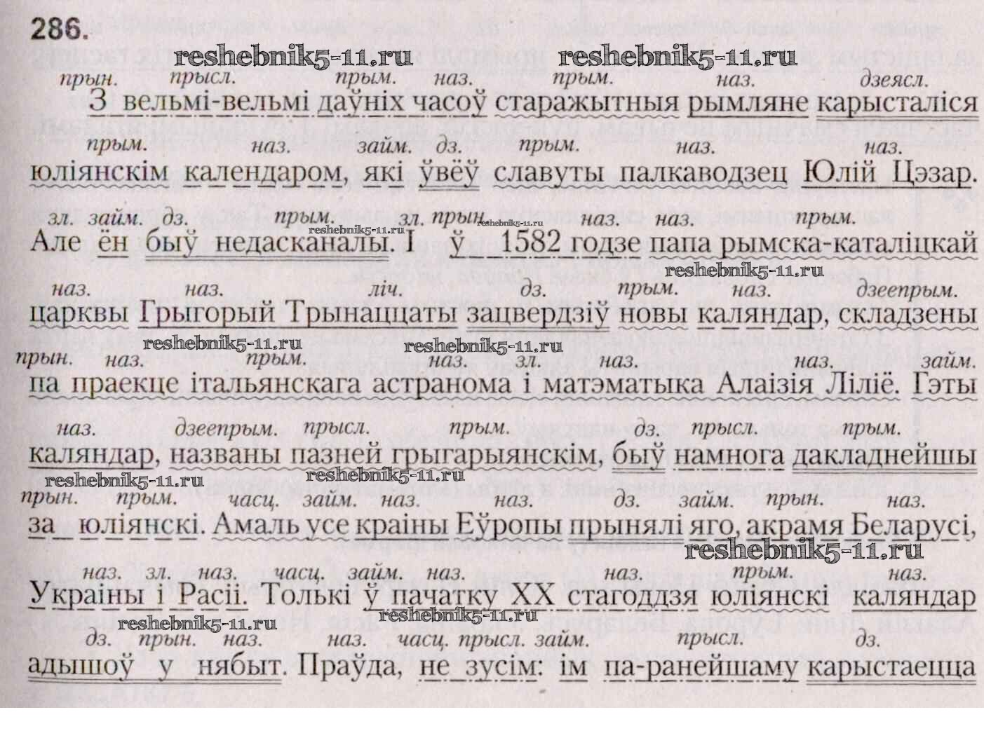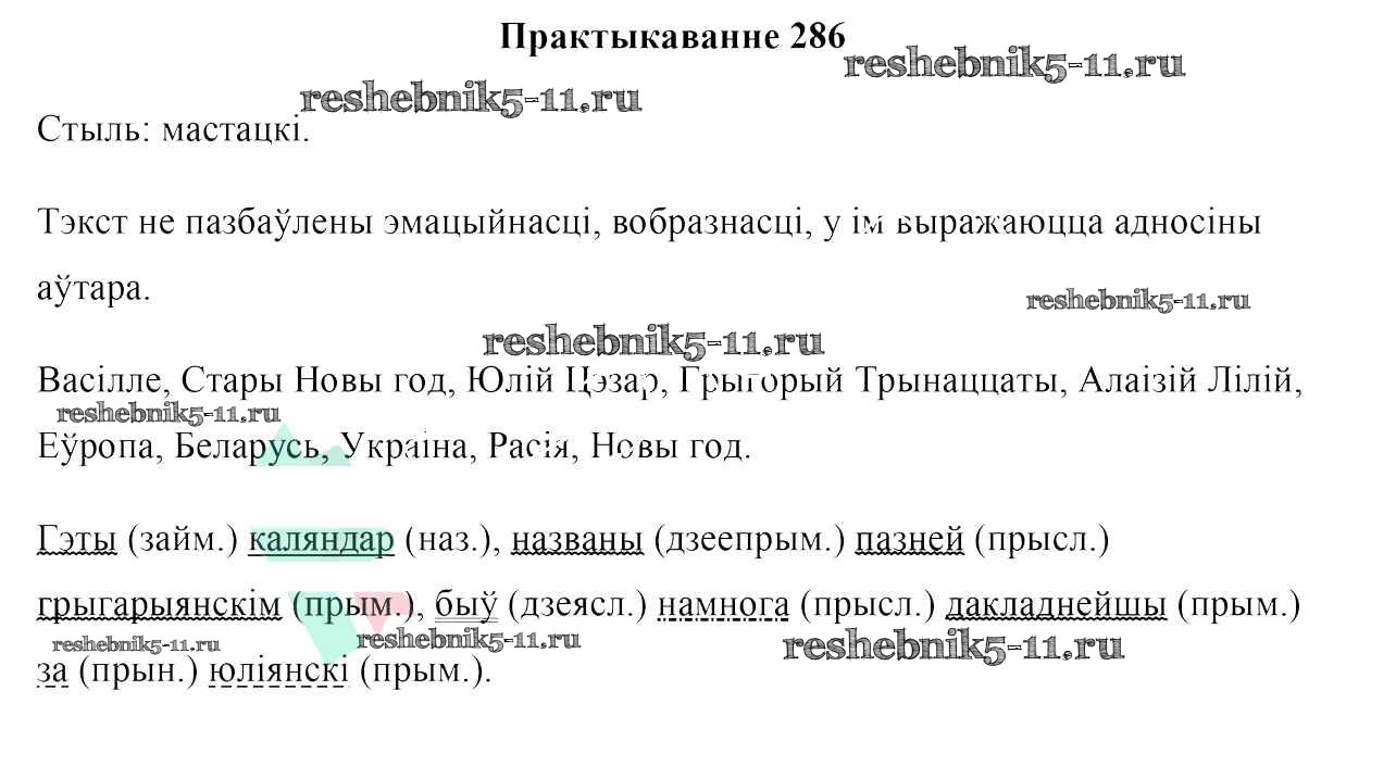 Готовая домашняя работа с ответами по Белорусскому языку за 7 класс Валочка, Язерская Учебник Национальный институт образования 2020 ФГОС - Практыкаванні 286
