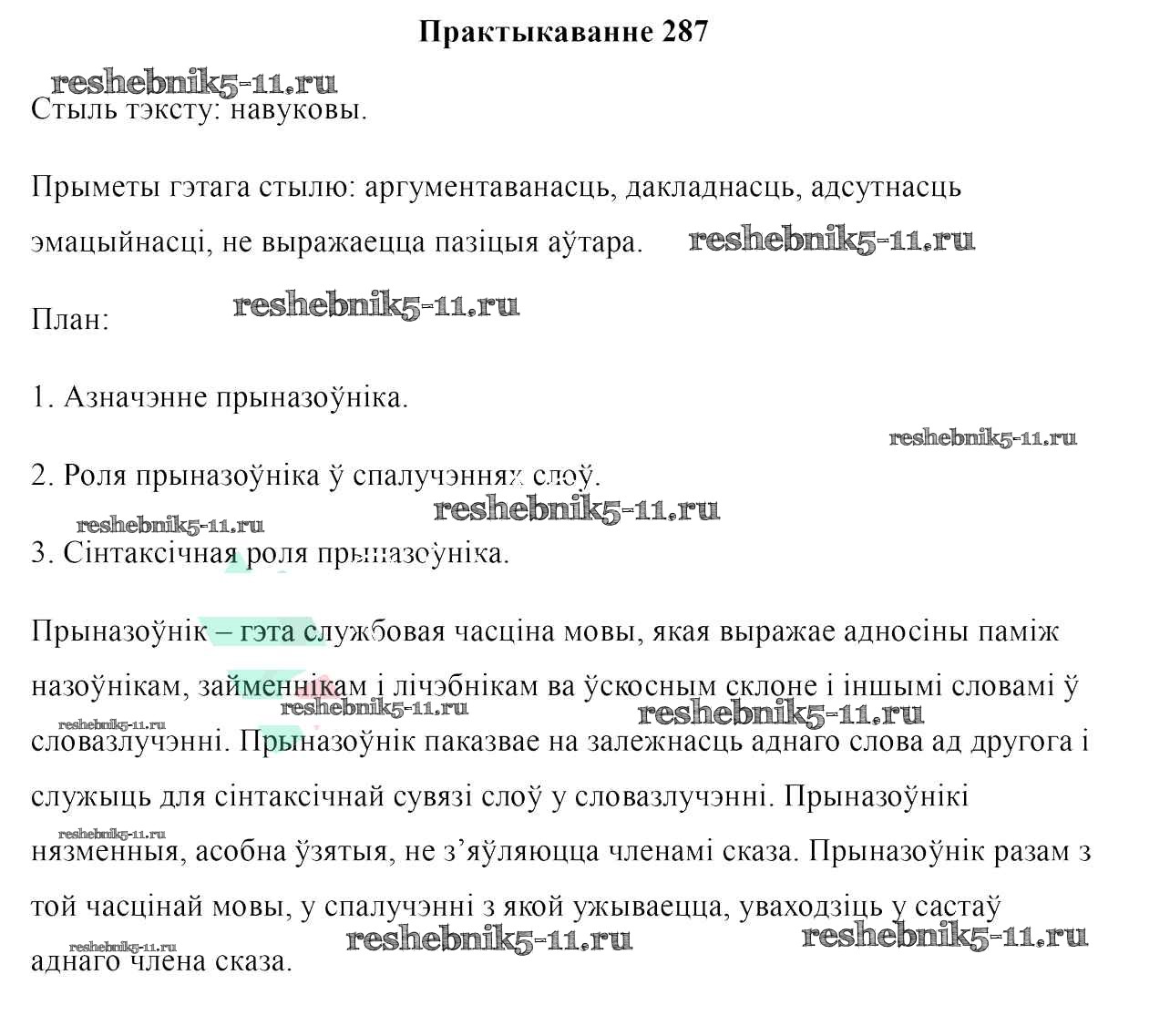 Готовая домашняя работа с ответами по Белорусскому языку за 7 класс Валочка, Язерская Учебник Национальный институт образования 2020 ФГОС - Практыкаванні 287