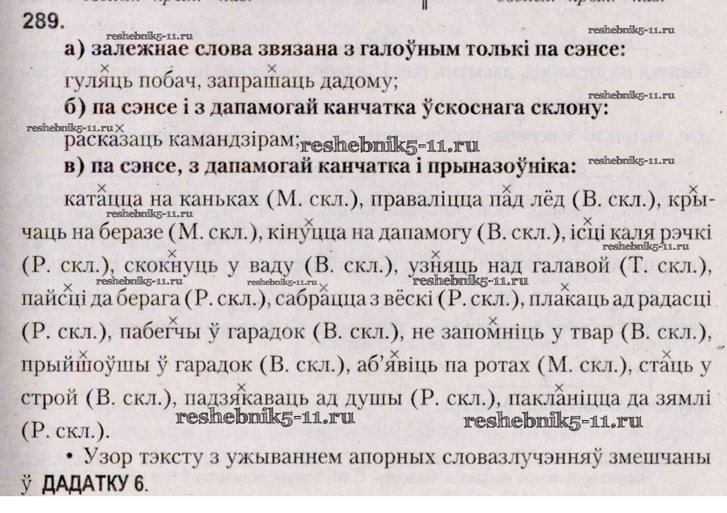 Готовая домашняя работа с ответами по Белорусскому языку за 7 класс Валочка, Язерская Учебник Национальный институт образования 2020 ФГОС - Практыкаванні 289