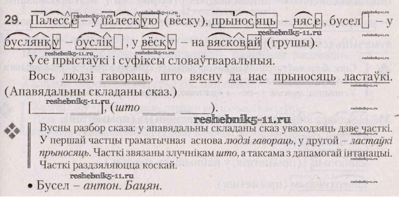Готовая домашняя работа с ответами по Белорусскому языку за 7 класс Валочка, Язерская Учебник Национальный институт образования 2020 ФГОС - Практыкаванні 29
