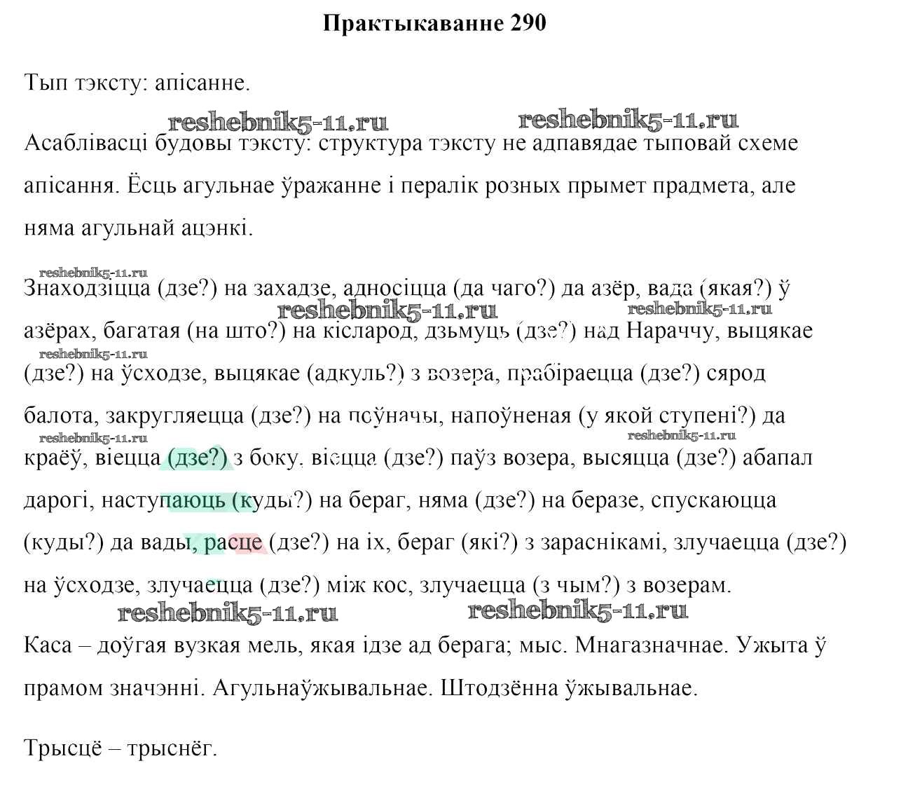 Готовая домашняя работа с ответами по Белорусскому языку за 7 класс Валочка, Язерская Учебник Национальный институт образования 2020 ФГОС - Практыкаванні 290