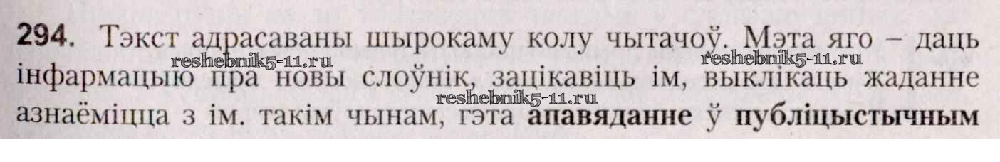 Готовая домашняя работа с ответами по Белорусскому языку за 7 класс Валочка, Язерская Учебник Национальный институт образования 2020 ФГОС - Практыкаванні 294