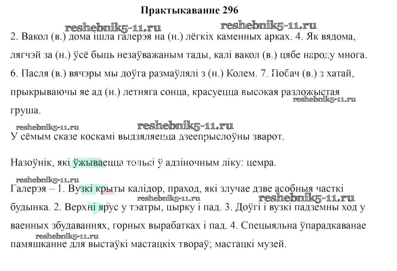 Готовая домашняя работа с ответами по Белорусскому языку за 7 класс Валочка, Язерская Учебник Национальный институт образования 2020 ФГОС - Практыкаванні 296