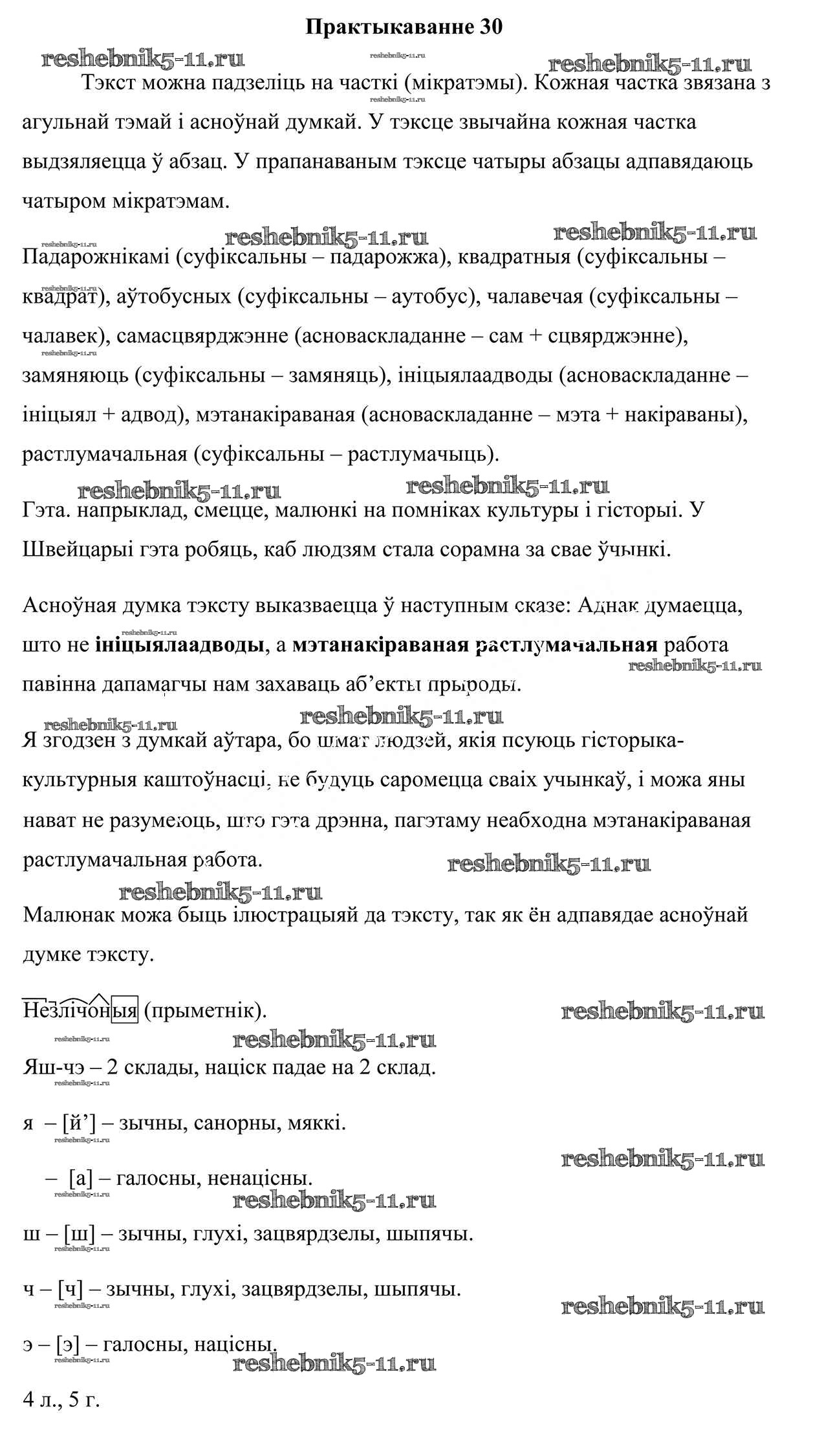 Готовая домашняя работа с ответами по Белорусскому языку за 7 класс Валочка, Язерская Учебник Национальный институт образования 2020 ФГОС - Практыкаванні 30