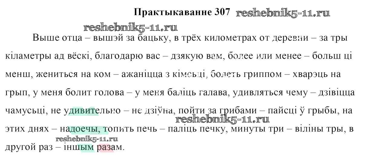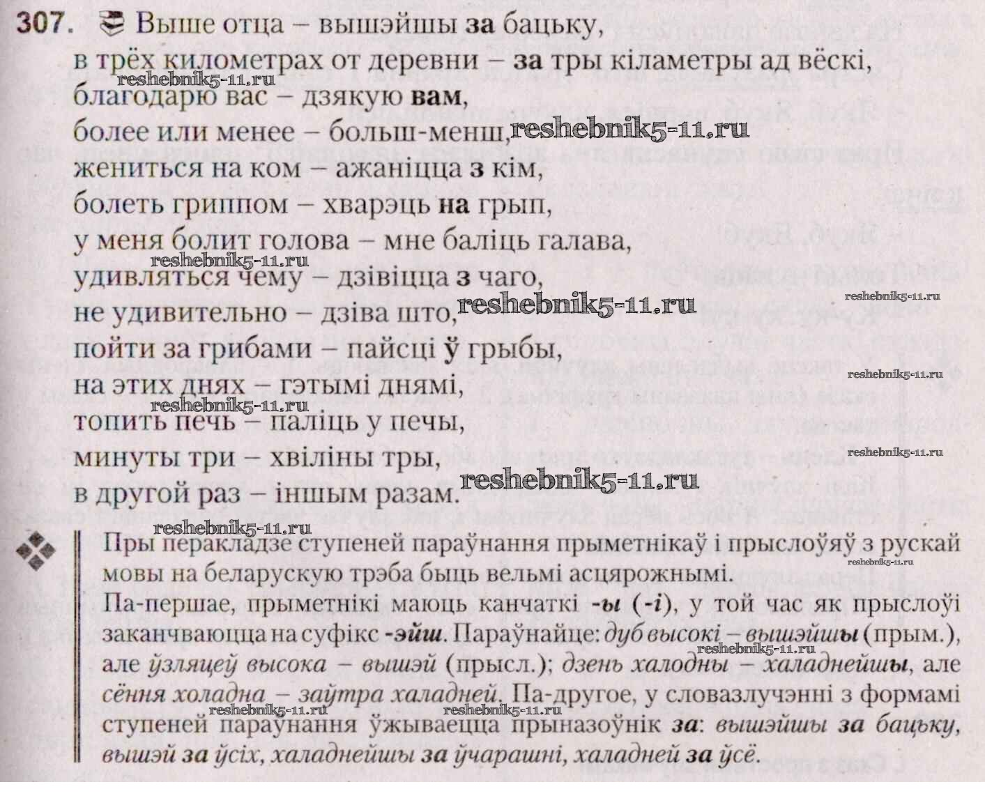 Готовая домашняя работа с ответами по Белорусскому языку за 7 класс Валочка, Язерская Учебник Национальный институт образования 2020 ФГОС - Практыкаванні 307