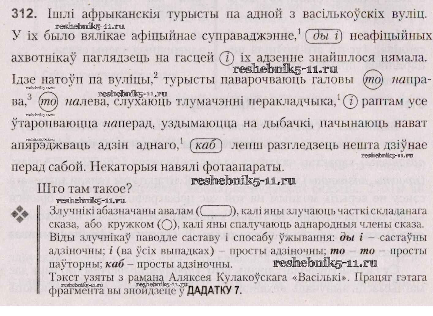 Белорусский язык за 7 класс Валочка Учебник Национальный институт образования практыкаванне 312