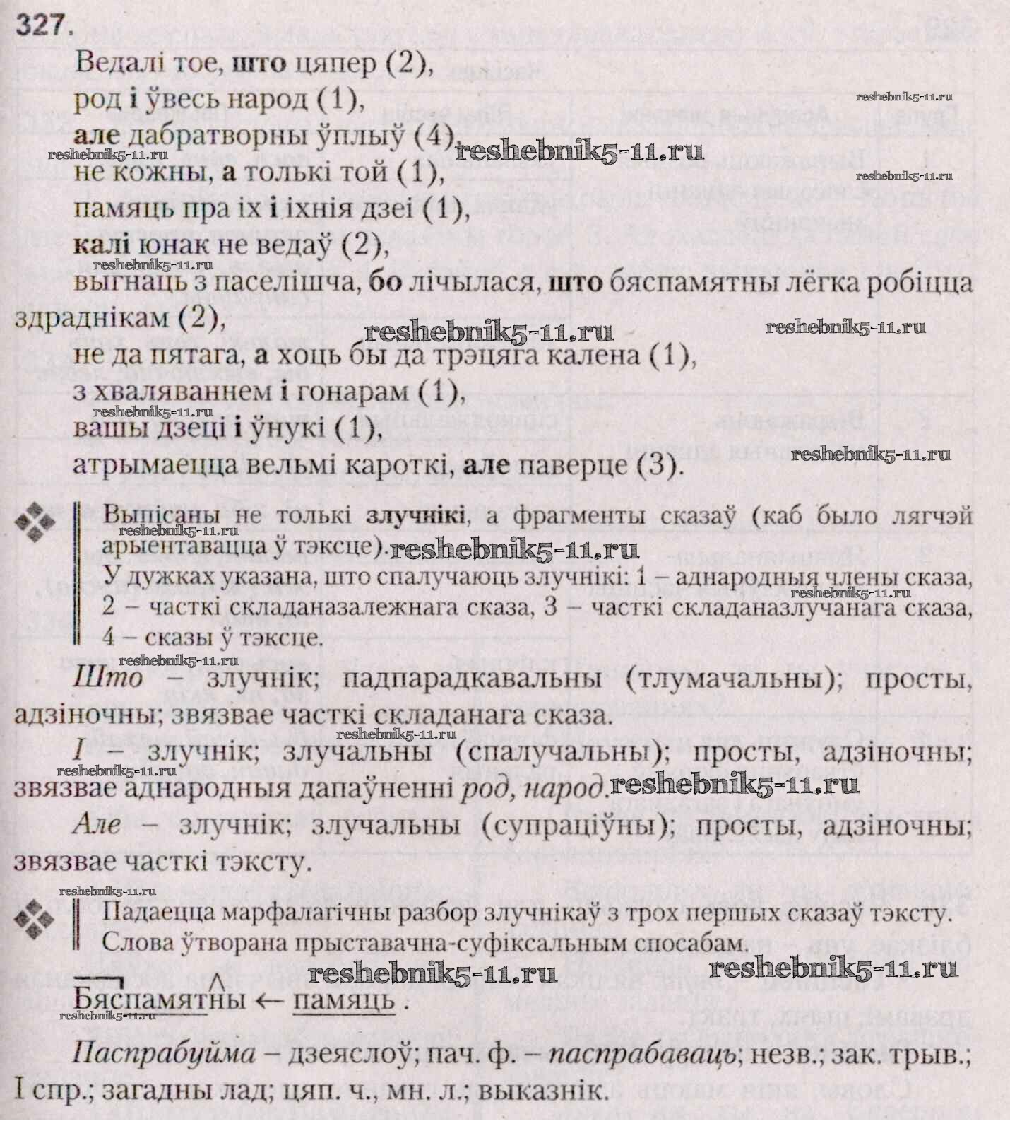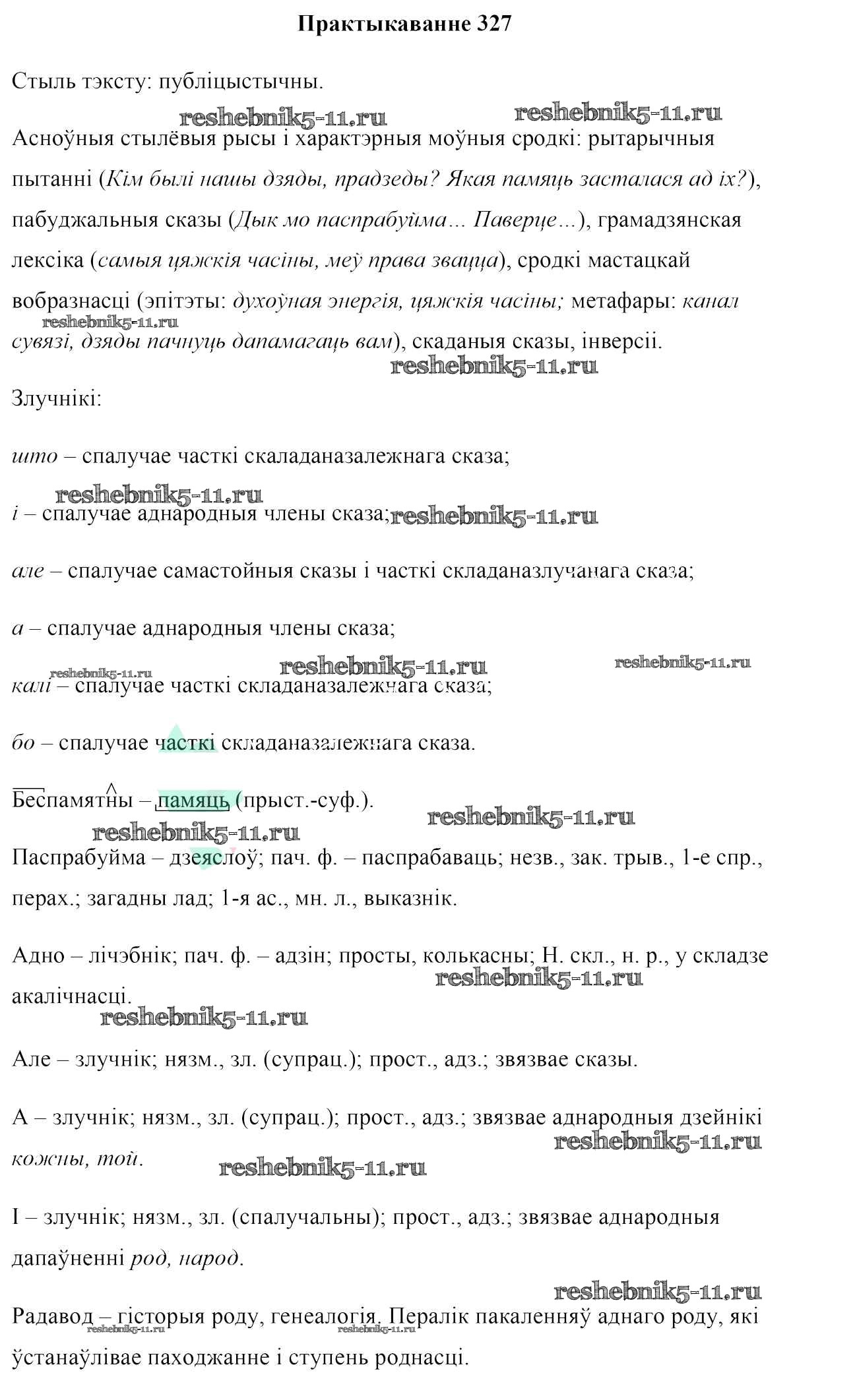 Готовая домашняя работа с ответами по Белорусскому языку за 7 класс Валочка, Язерская Учебник Национальный институт образования 2020 ФГОС - Практыкаванні 327