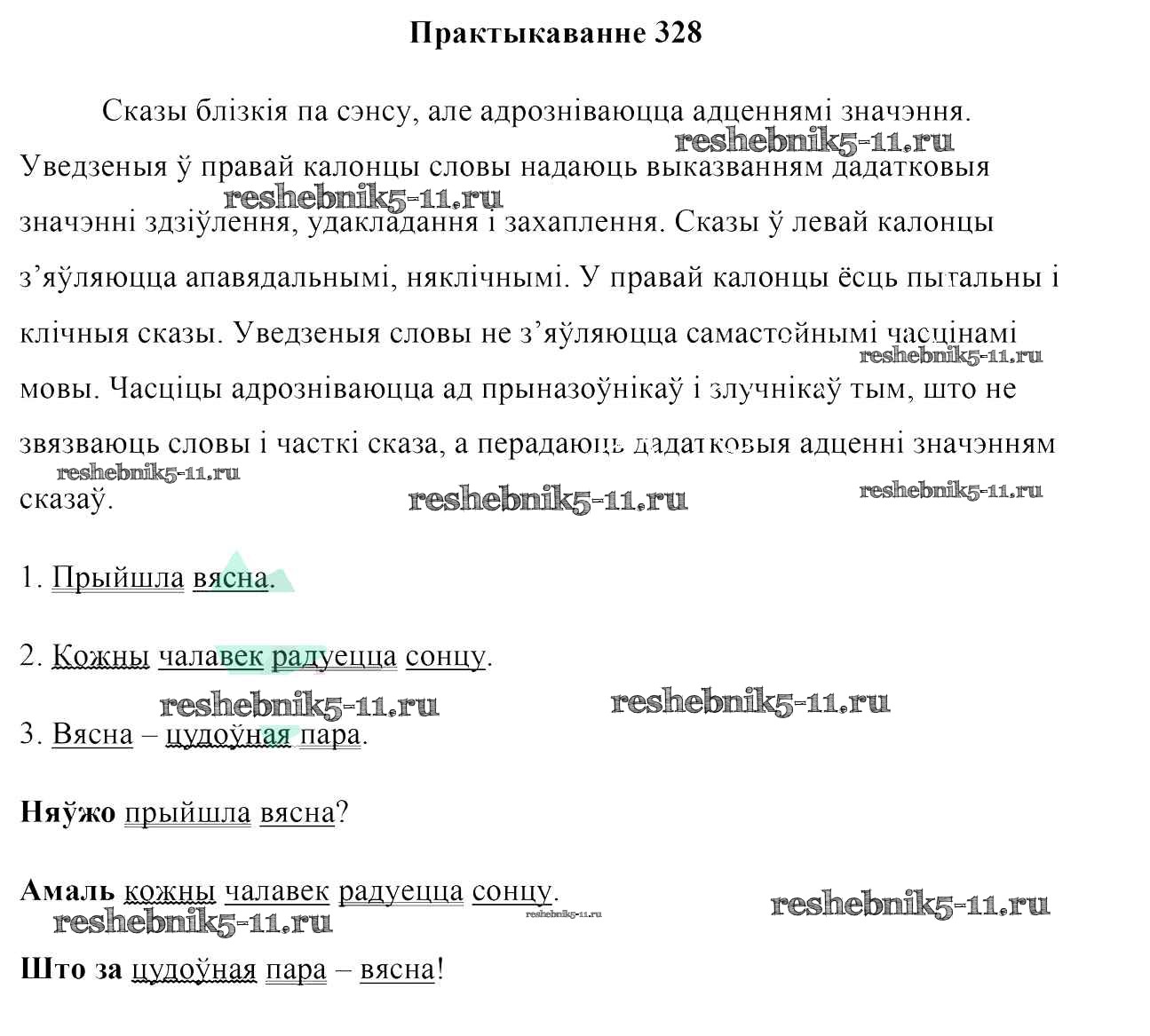 Готовая домашняя работа с ответами по Белорусскому языку за 7 класс Валочка, Язерская Учебник Национальный институт образования 2020 ФГОС - Практыкаванні 328