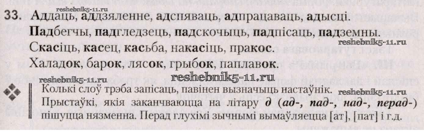 Готовая домашняя работа с ответами по Белорусскому языку за 7 класс Валочка, Язерская Учебник Национальный институт образования 2020 ФГОС - Практыкаванні 33