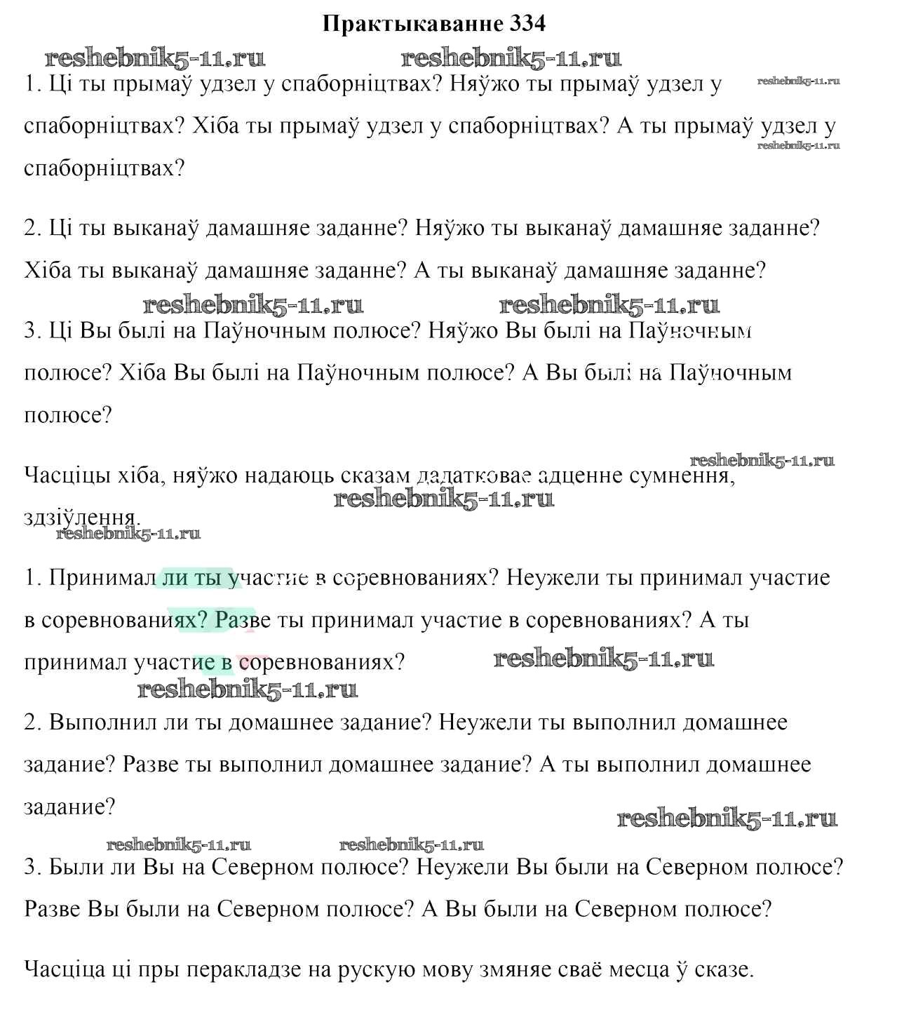 Готовая домашняя работа с ответами по Белорусскому языку за 7 класс Валочка, Язерская Учебник Национальный институт образования 2020 ФГОС - Практыкаванні 334