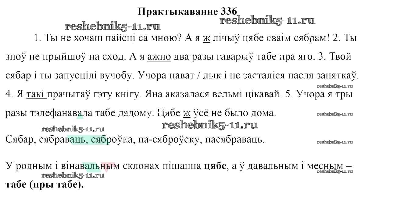 Готовая домашняя работа с ответами по Белорусскому языку за 7 класс Валочка, Язерская Учебник Национальный институт образования 2020 ФГОС - Практыкаванні 336
